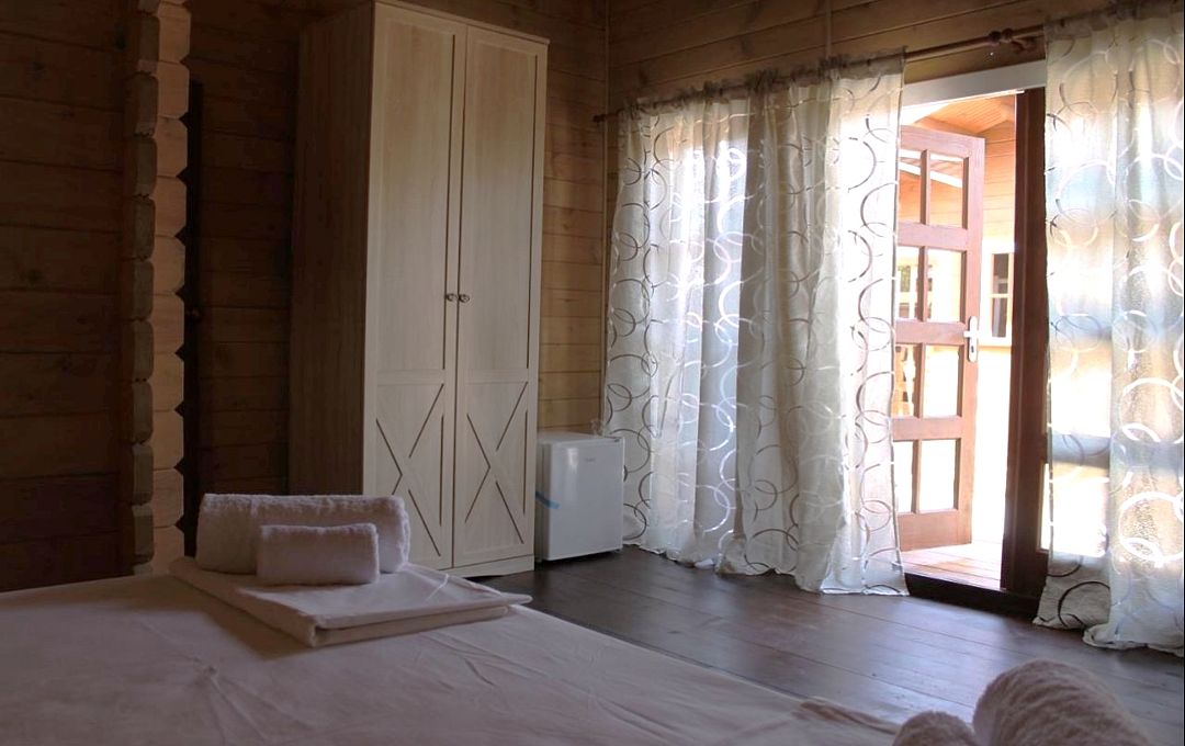 Для проживания предназначено 19 номеров - деревянные коттеджи и кирпичное шале. В каждом номере отдельный сануезл с душем, кондиционер, ТВ, холодильник.
