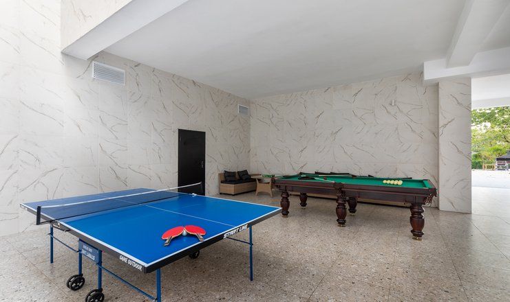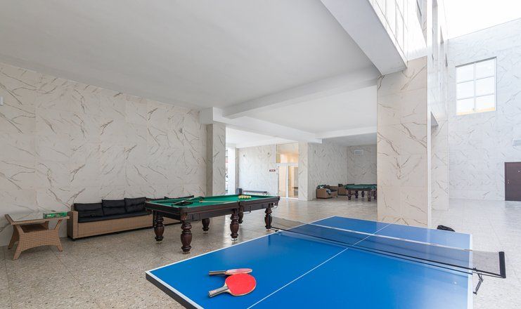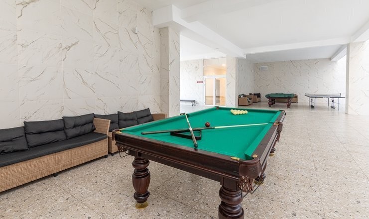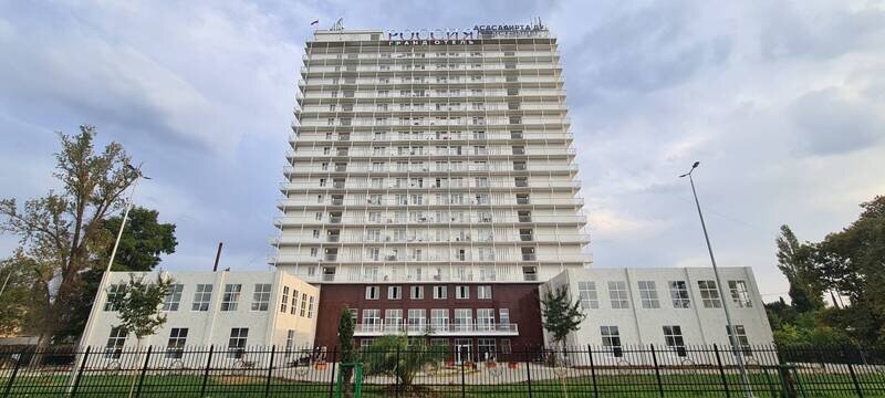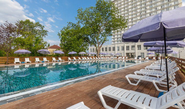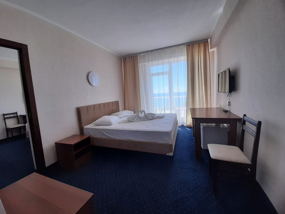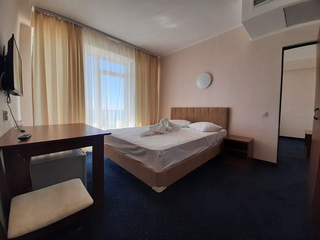 18-ти этажное здание гостиницы возвышается на одной из главный улиц Гудауты — проспекте Героев. Обширный жилой фонд включает в себя 300 номеров разной категории комфорта. В каждом — индивидуальный санузел с душем, кондиционер, телевизор и холодильник.