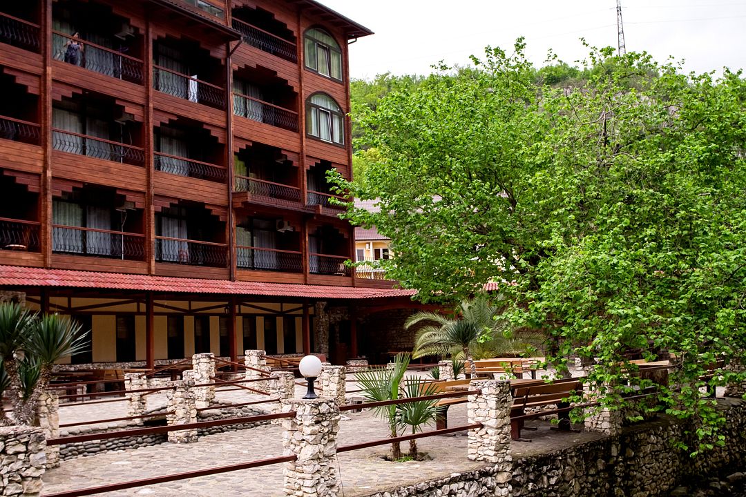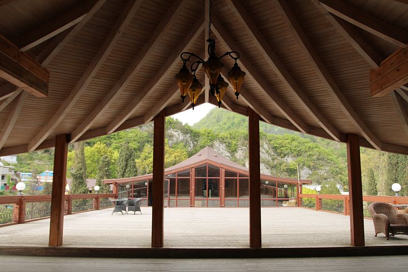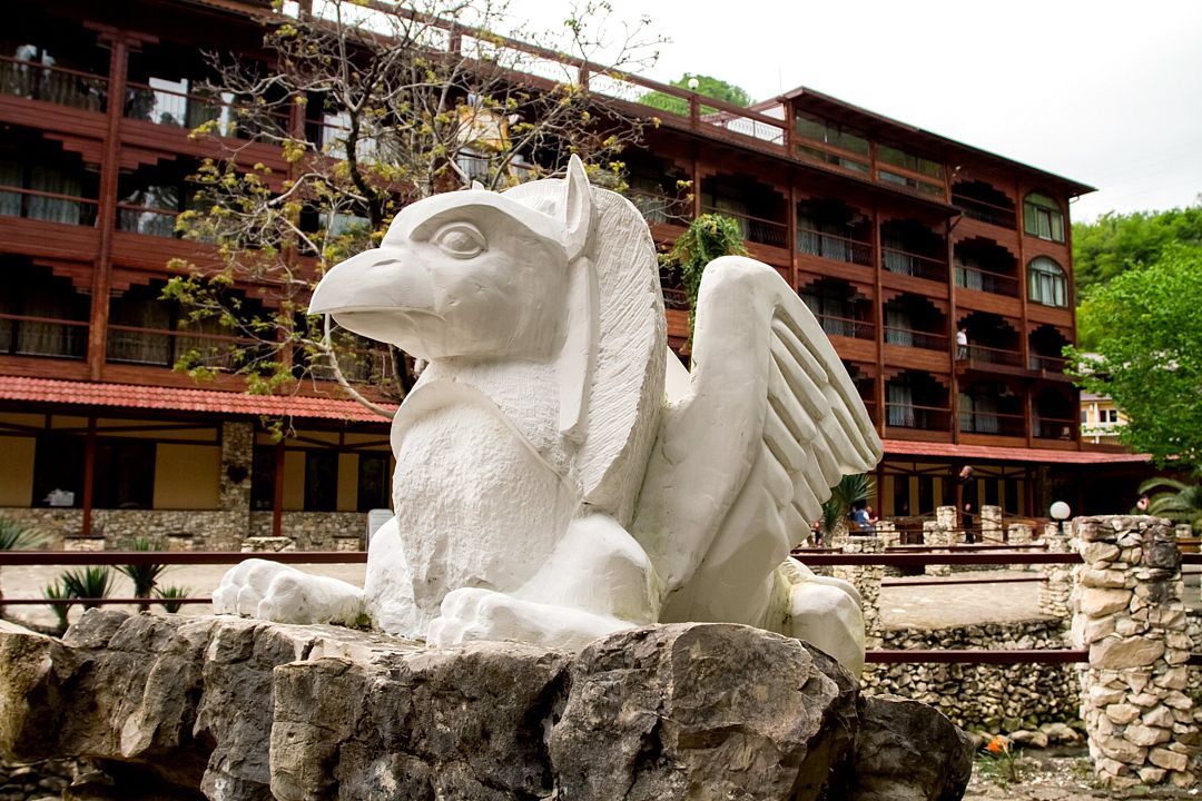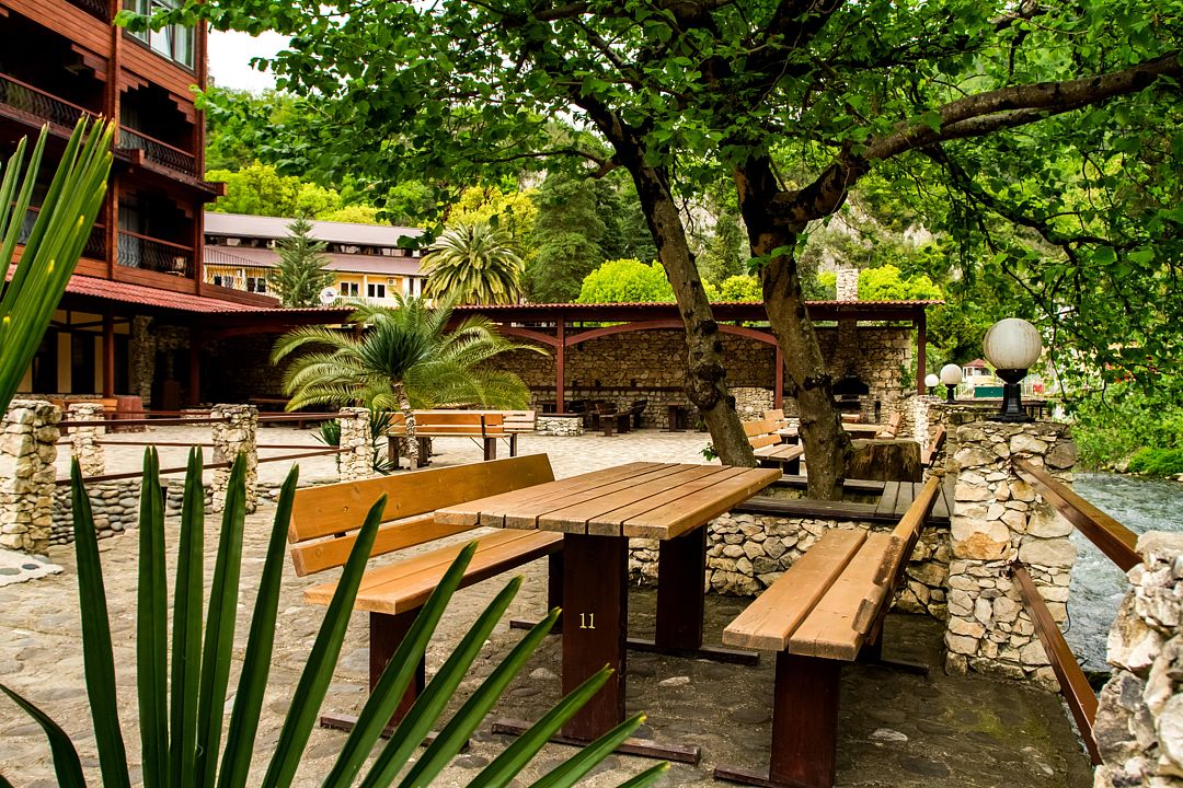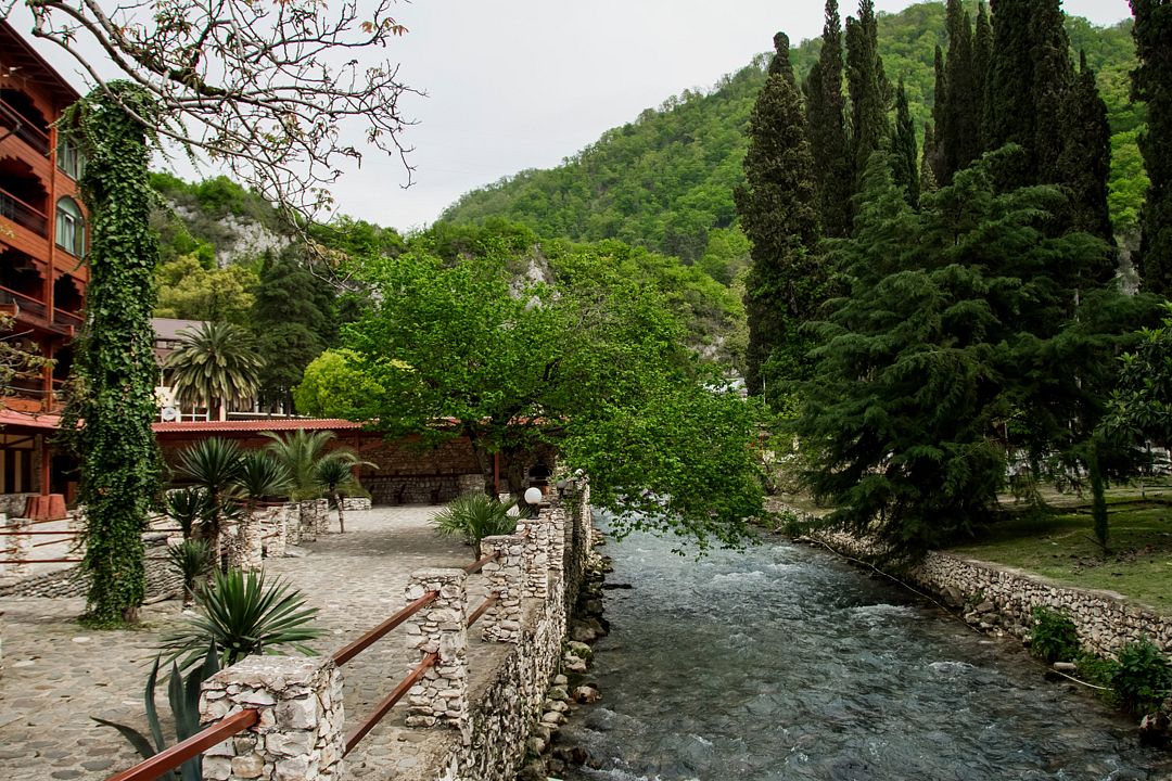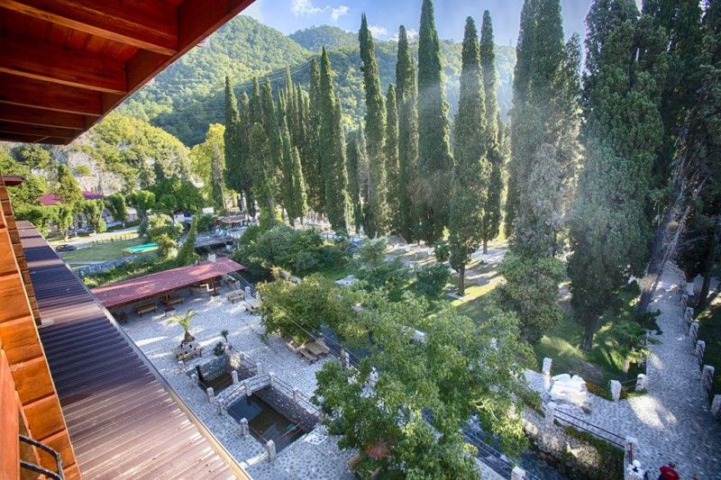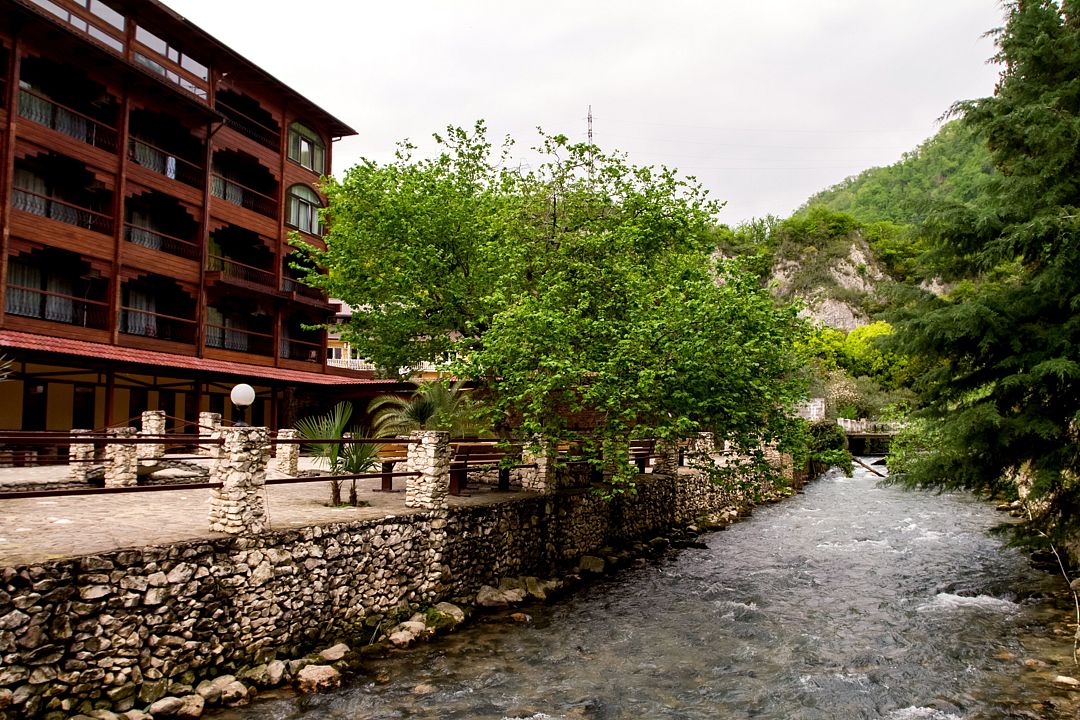 Отель «Грифон» расположен на берегу реки Псырцха, в Новом Афоне.
