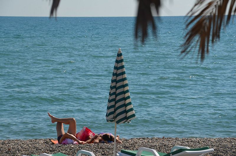 До городского пляжа с песчано-галечным покрытием около 15 минут ходьбы по тенистой и живописной кипарисовой аллее с множеством ресторанчиков, магазинов и киосков. На берегу работают службы проката, где можно арендовать пляжный инвентарь.