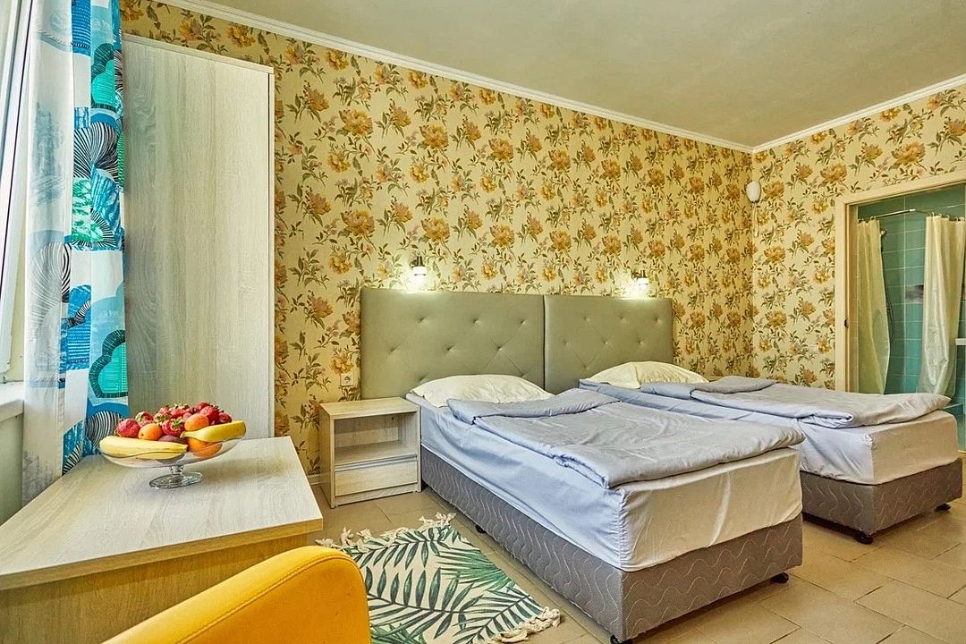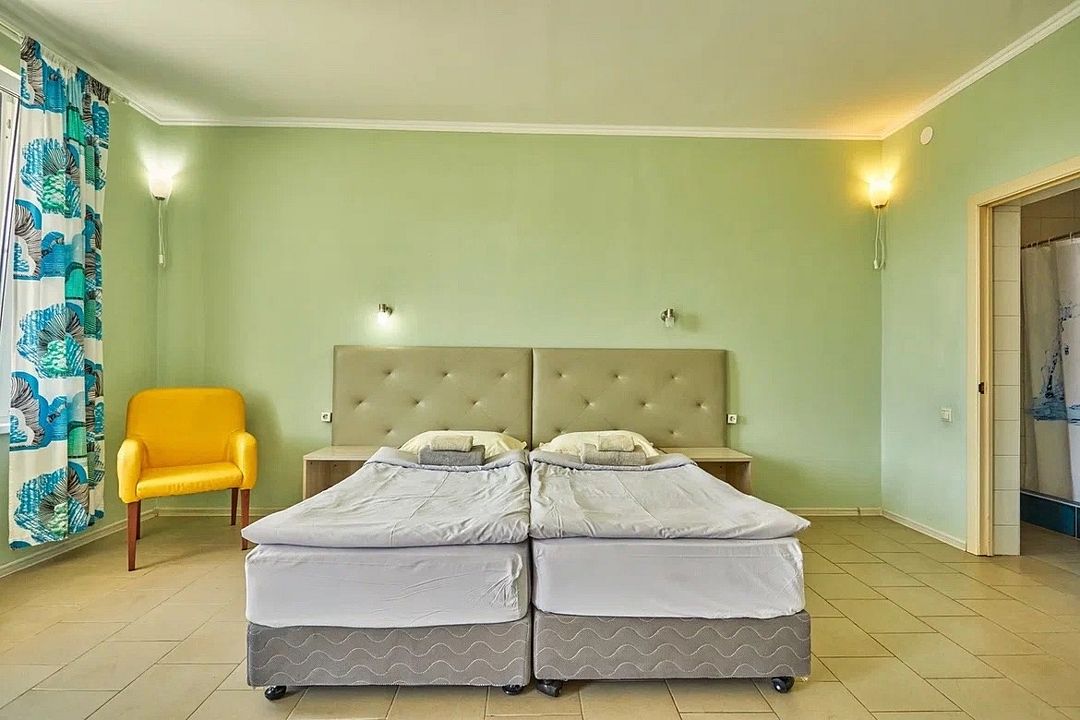 В номере установлена двуспальная кровать или две односпальные кровати (на выбор гостя), которые оснащены очень удобными матрасами. Также в номере есть раскладной диван.
