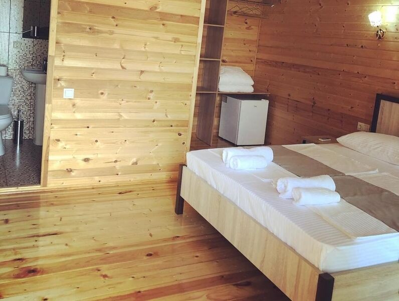 Всего в 50 метрах от жилых домиков расположен берег моря и мелко-галечный пляж.