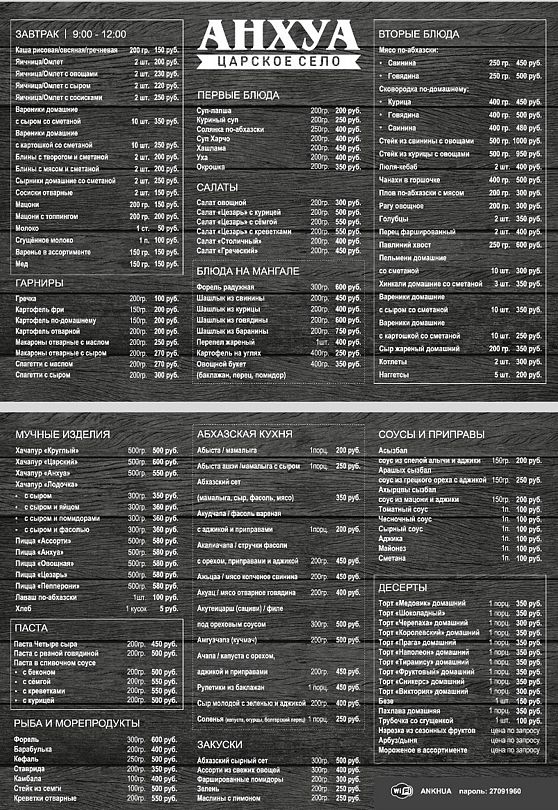 Здесь вас ждет разнообразное меню, сочетающее блюда европейской и абхазской кухни.