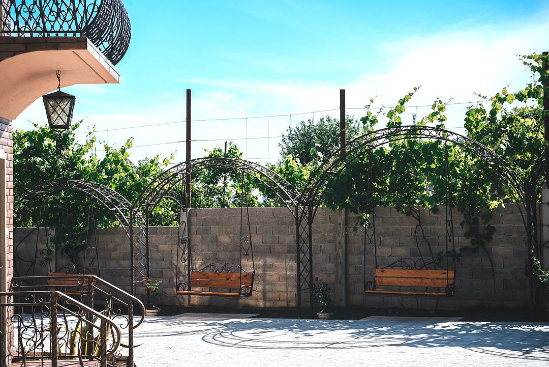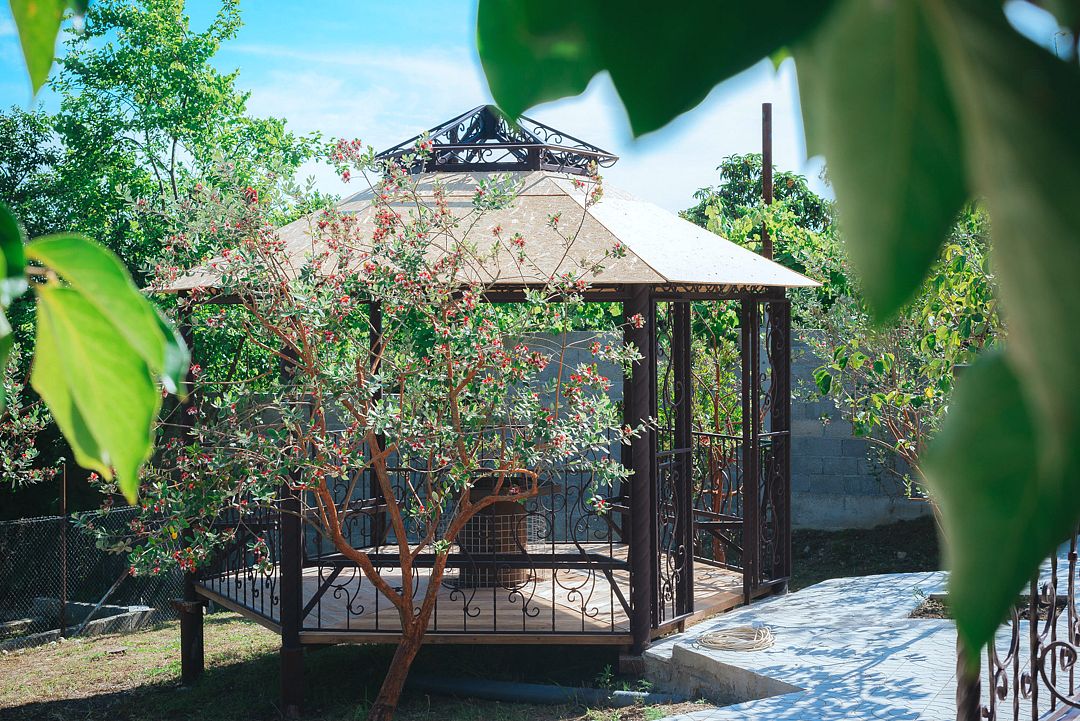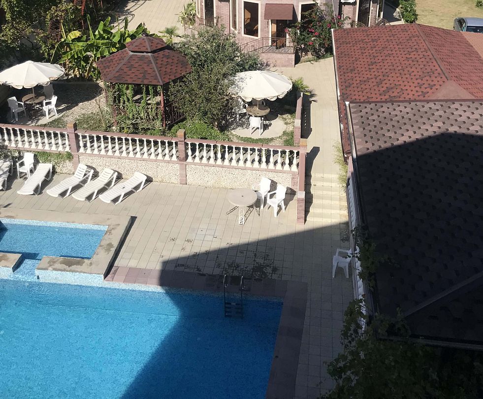 Во внутреннем дворе гостевого дома расположены: открытый бассейн, баня, прекрасный сад с южными деревьями, а также удобная летняя веранда, где каждую неделю проходят веселые абхазские застолья, ставшие доброй традицией для гостей Абхазии. Также есть мангальная беседка, где гости могут самостоятельно приготовить шашлыки, рыбу или овощи на гриле, и вдоволь поболтать, глядя на звездное небо Абхазии. Для детей есть детская площадка. До оборудованного городского пляжа 1,2 км, на пляже есть лежаки и зонты.