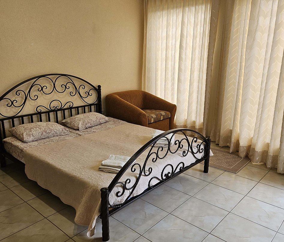 Гостевой дом состоит из трехэтажного здания и имеет оригинальную форму, напоминающую испанский замок. В нем располагаются просторные и комфортные номера с кованной мебелью, витражными окнами и винтажными лестницами. В номерах есть все условия для комфортного проживания, а именно телевизор, кондиционер, холодильник (кроме стандартных номеров) и собственный сан. узел.