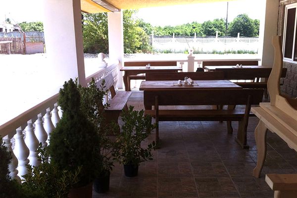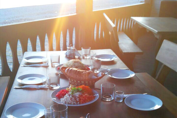 Питание отдыхающих осуществляется 3 раза в день, комплексно, в столовой базы. Кухня домашняя, с элементами национальной. Есть также летнее кафе и бар.