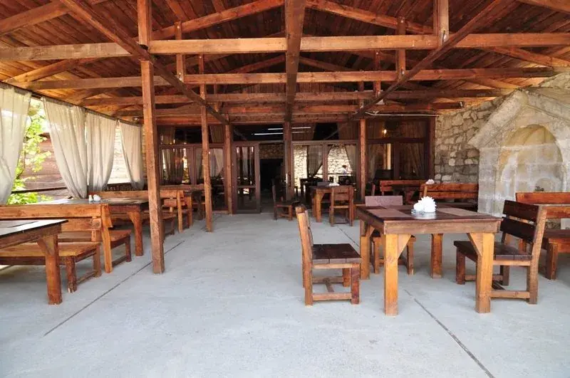 Кафе отеля предлагает гостям разнообразное меню кавказской, русской и европейской кухни, блюда, приготовленные на мангале и в большом камине, а также вегетарианское меню.
