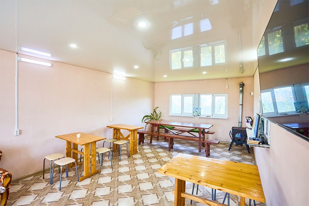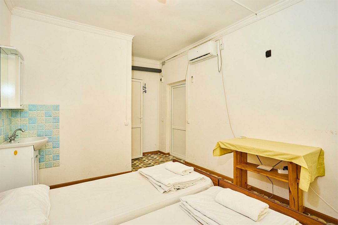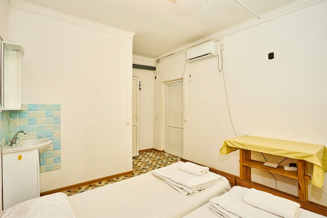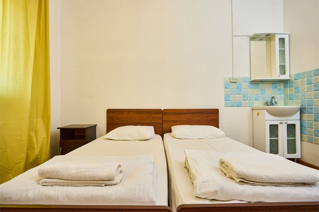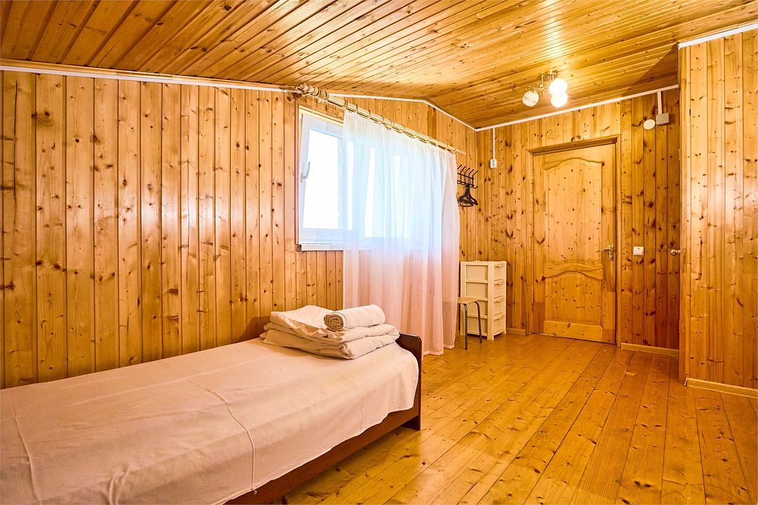 На втором этаже находятся номера, в каждом из которых есть две односпальные кровати, стол, стулья, холодильник, тумбочка и раковина. Также в номере есть зеркало. Санузел в номере отдельный. Душ общий и находится на первом этаже. Кондиционер в номере не предусмотрен. Интерьер выполнен в деревянном стиле.Двухместный стандарт