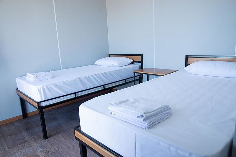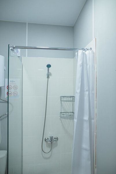 В номере: 2 раздельные кровати, тумбочка, матрас, подушка, постельное белье, душ, санузел, бойлер (горячая вода — постоянно), фен (по запросу, платно), индивидуальный кондиционер, электрический чайник (по запросу, платно), одеяла (в прокат), 2 полотенца для лица, уборка номеров (платно, по запросу), смена постельного белья (при заезде — бесплатно, далее — платно, по запросу).