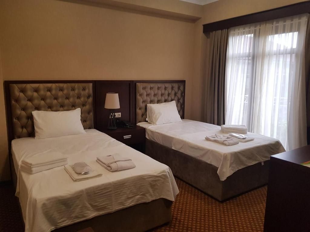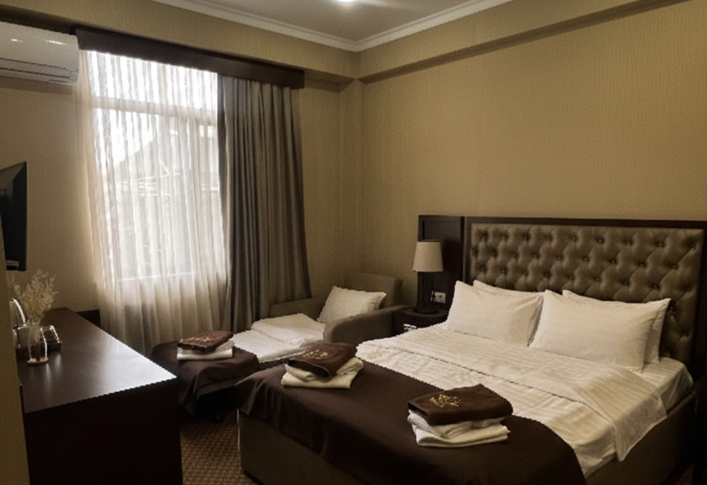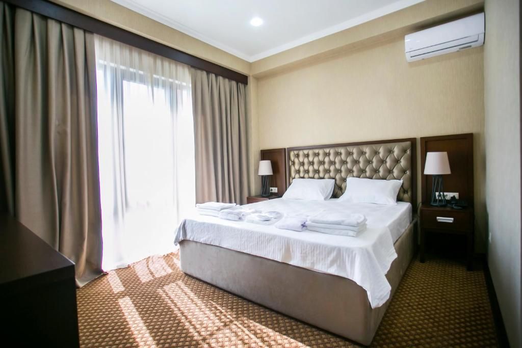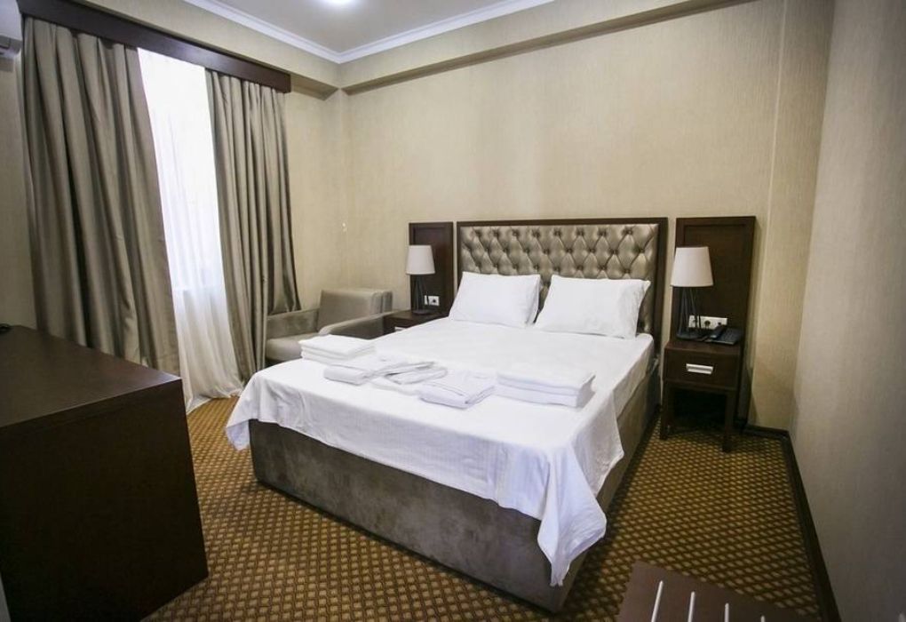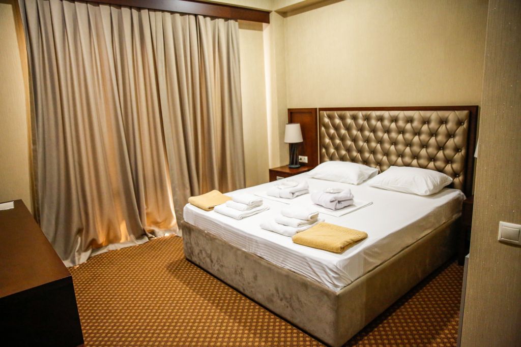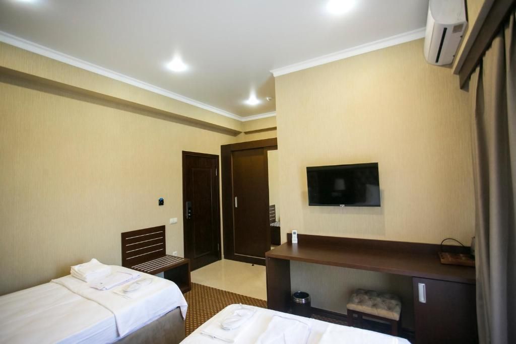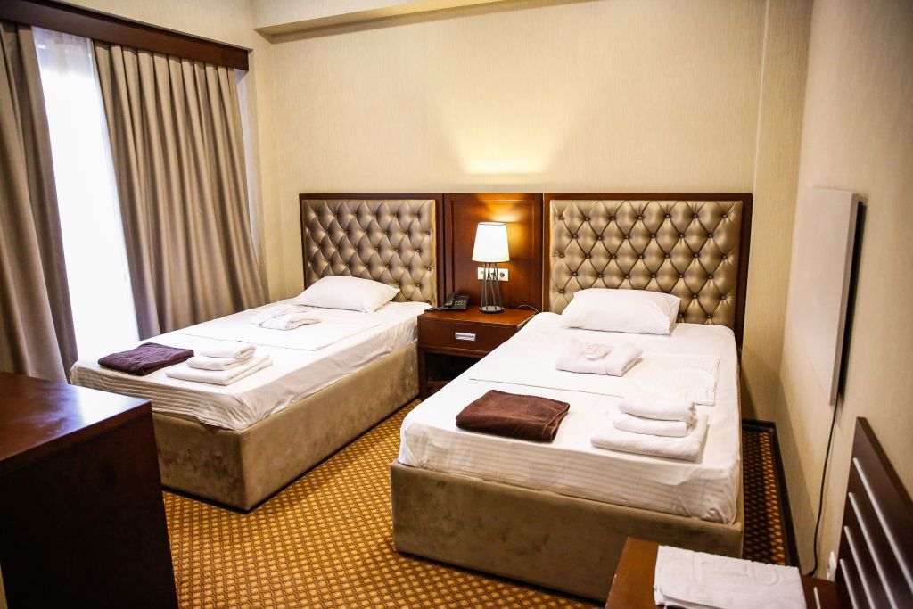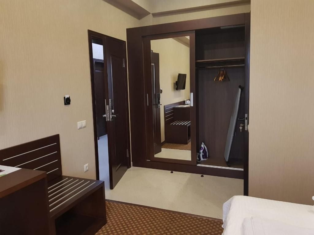 Очень и очень хорошего (прекрасного) уровня отель, почти соответствует заявленным 4 звёздам. Есть не большие недочеты, но только потому что отель ещё достраивается (3 и 4 этажи ещё не запустили). Просторный холл, коридоры и лестница сделаны очень достойно. Материалы хорошо подобраны, чувствуется рука дизайнера. Номера очень чистые и прекрасно оформлены, выдержаны в едином стиле, выглядят дорого и богато. Шикарно подобранна цветовая гамма отделки, текстиля, мебели. Шторы вообще огонь, хорошая современная бытовая техника, современный санузел, в номере есть все необходимое. Кондиционер, обогреватель, чайные принадлежности, мини-бар, телевизор, Wi-Fi, шикарный матрас, дополнительные подушки и одеяло, белоснежное белье, халаты.