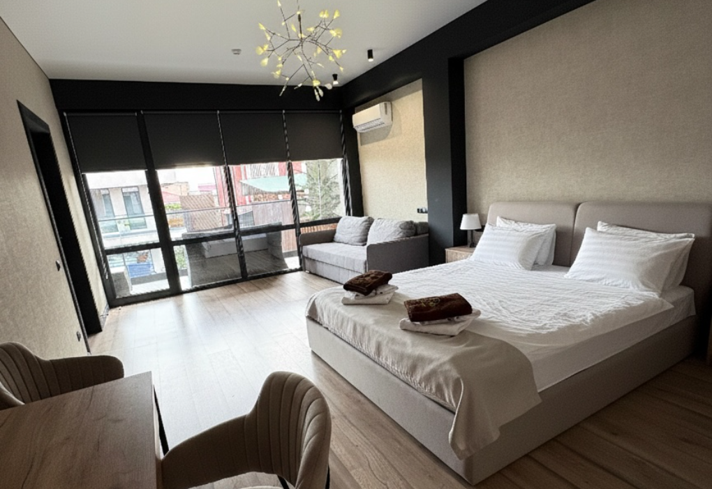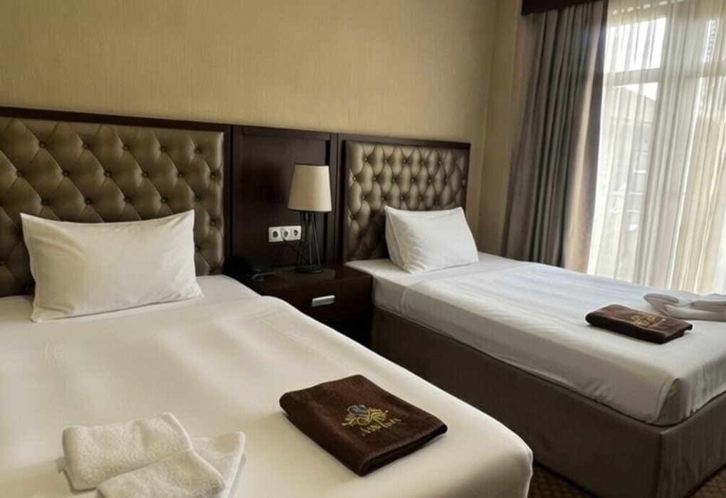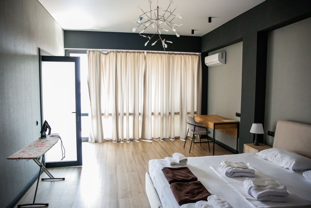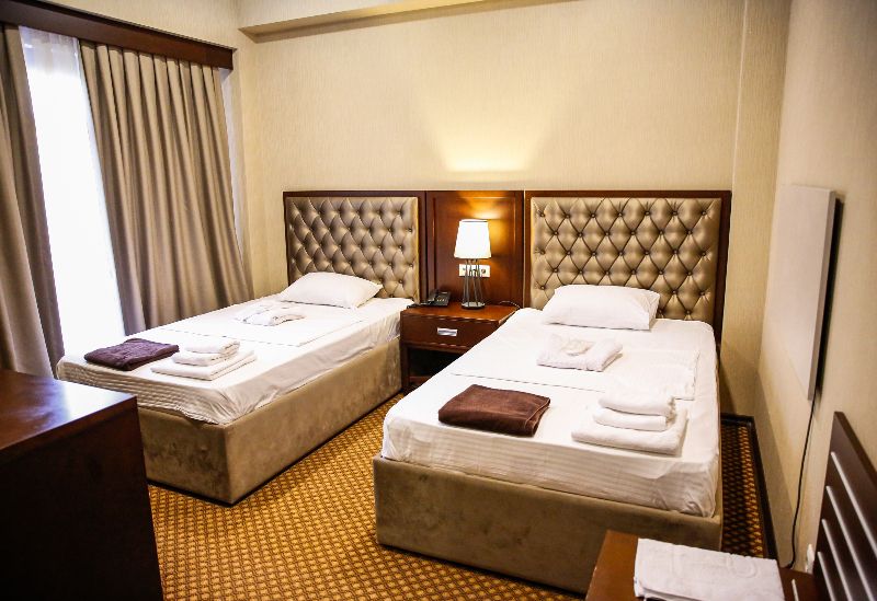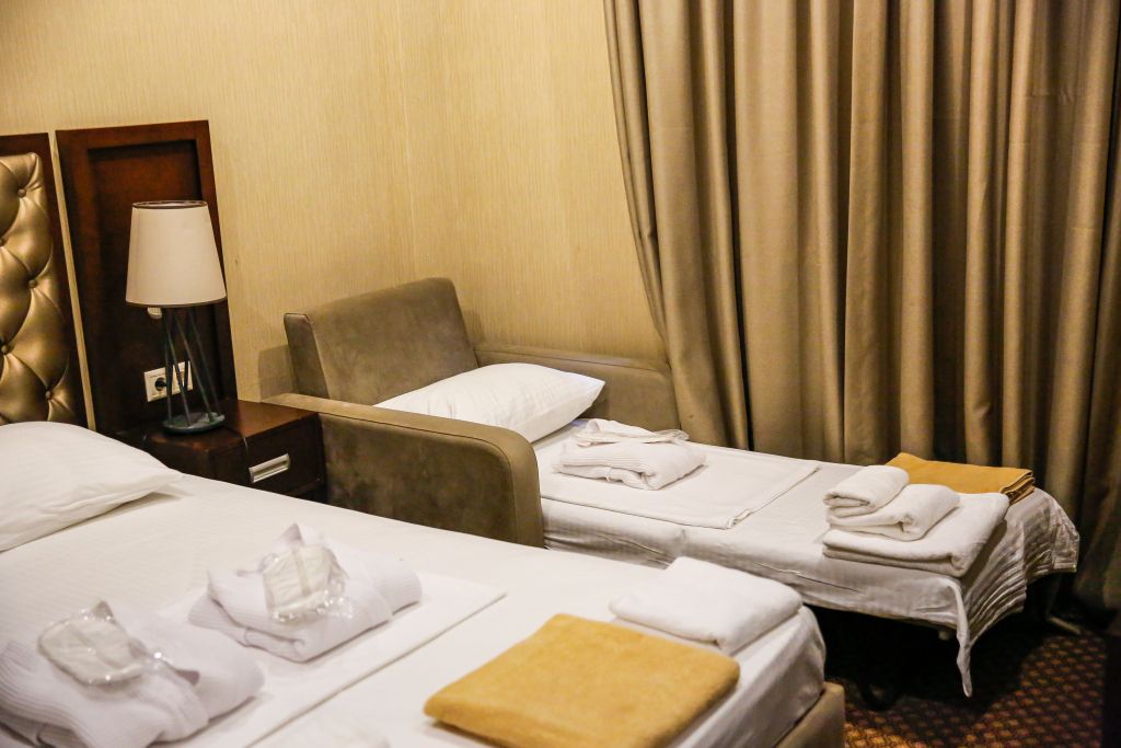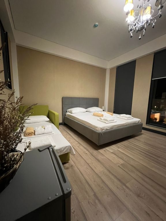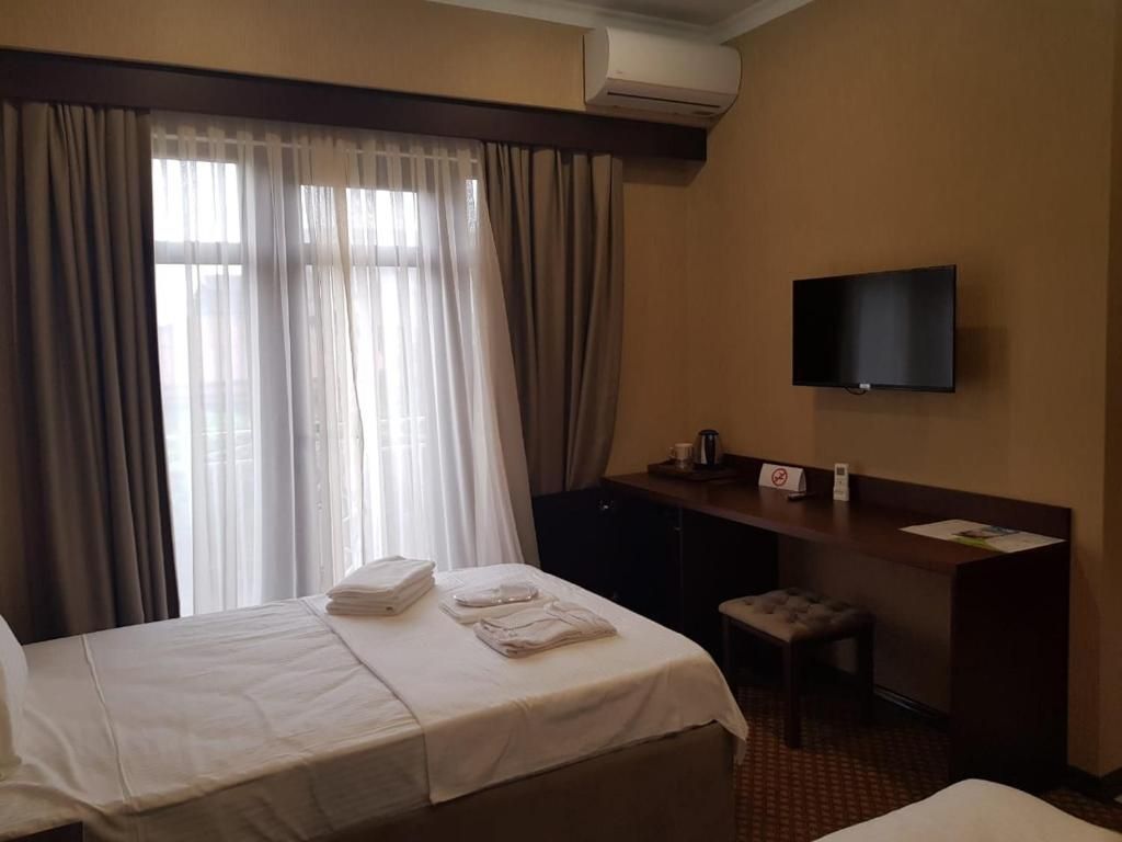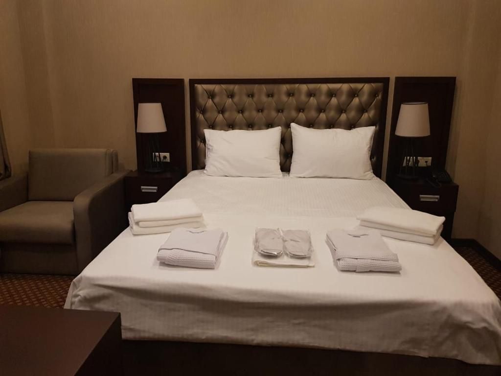 Очень и очень хорошего (прекрасного) уровня отель, почти соответствует заявленным 4 звёздам. Есть не большие недочеты, но только потому что отель ещё достраивается (3 и 4 этажи ещё не запустили). Просторный холл, коридоры и лестница сделаны очень достойно. Материалы хорошо подобраны, чувствуется рука дизайнера. Номера очень чистые и прекрасно оформлены, выдержаны в едином стиле, выглядят дорого и богато. Шикарно подобранна цветовая гамма отделки, текстиля, мебели. Шторы вообще огонь, хорошая современная бытовая техника, современный санузел, в номере есть все необходимое. Кондиционер, обогреватель, чайные принадлежности, мини-бар, телевизор, Wi-Fi, шикарный матрас, дополнительные подушки и одеяло, белоснежное белье, халаты.