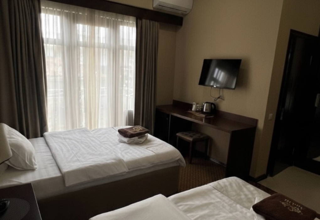 Короткий отпуск с друзьямиНе пожалеет!!!Город Сухум в это время года нам очень не понравился и мы почти уехали из него, но в последний момент решили переночевать, выбор пал на данный отель. Он нас поразил и приятно удивил. Для начало стоимость номера в 4-звездочном отеле (2210₽), во вторых На грустной серой улице стоял хорошо отремонтированный дом, высокий, красивый, встретили нас двое мужчин (нас это немного смутило), но все остальное было очень даже на высоте. Мужчины оказались сотрудниками (администратор и охранник), были очень вежливы и обходительны. Заселили нас быстро, рассчитали с помощью карты (что редкость для здешних мест), угостили вином и фруктами, отвечали на наши вопросы, поддерживали беседу, мы были приятно удивлены. Теперь об отеле.