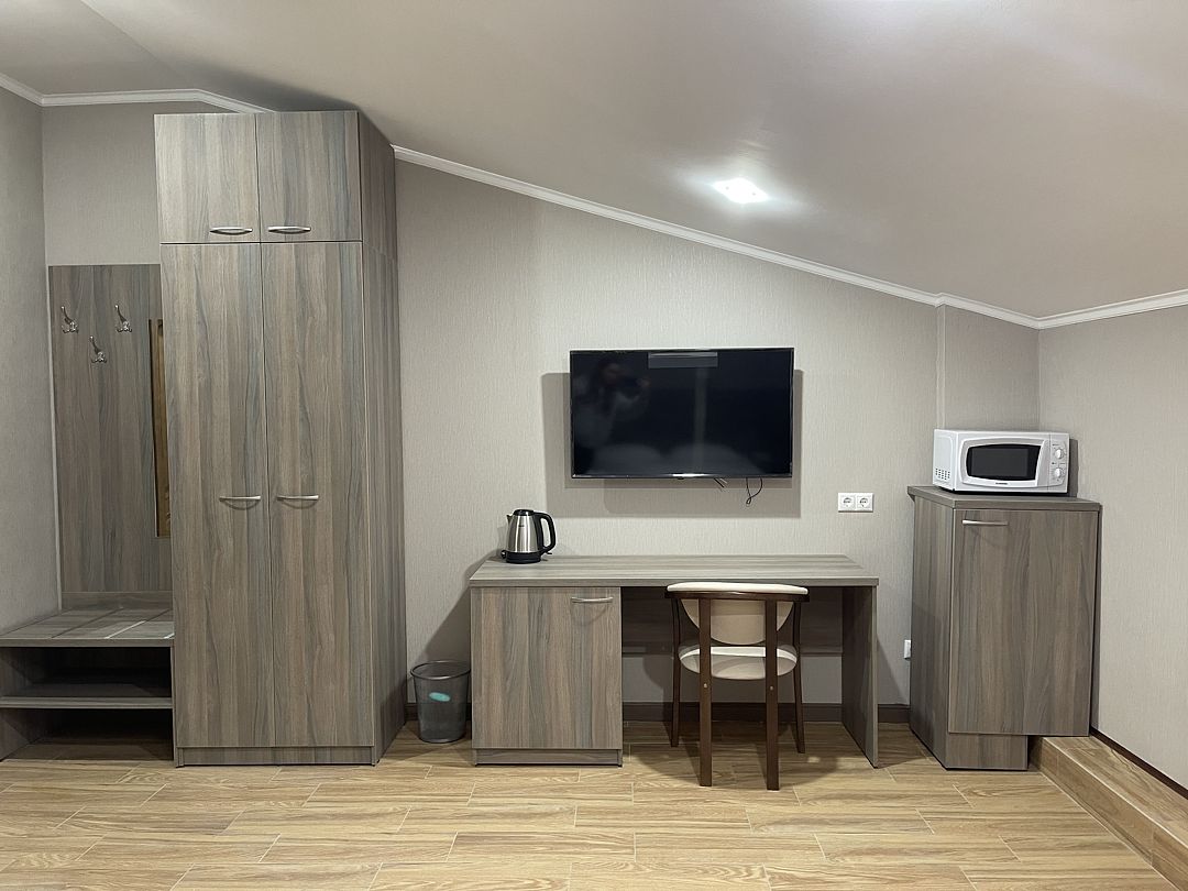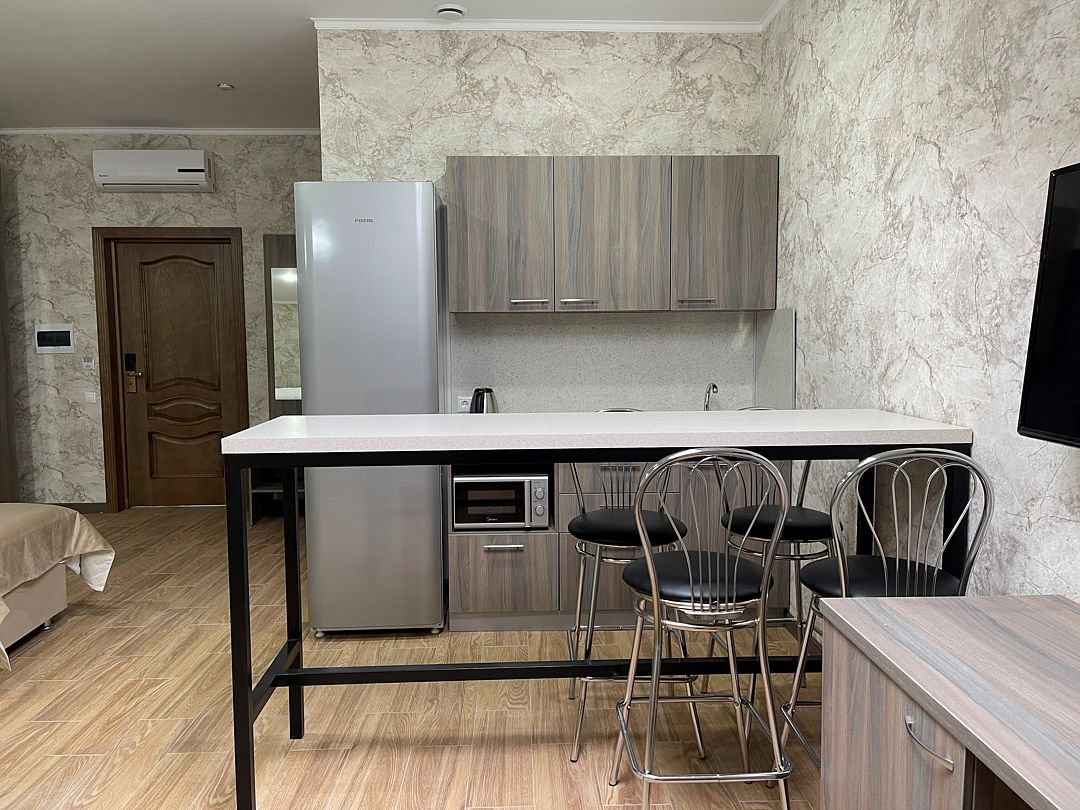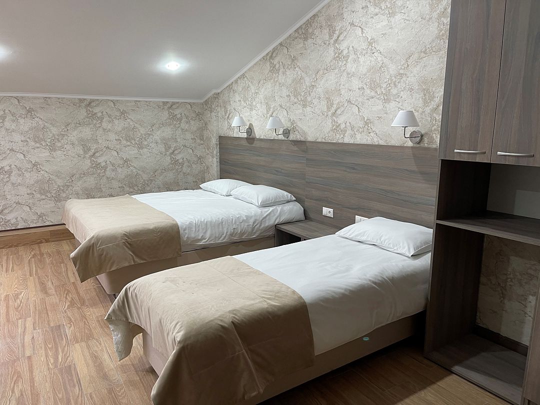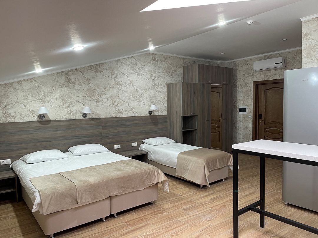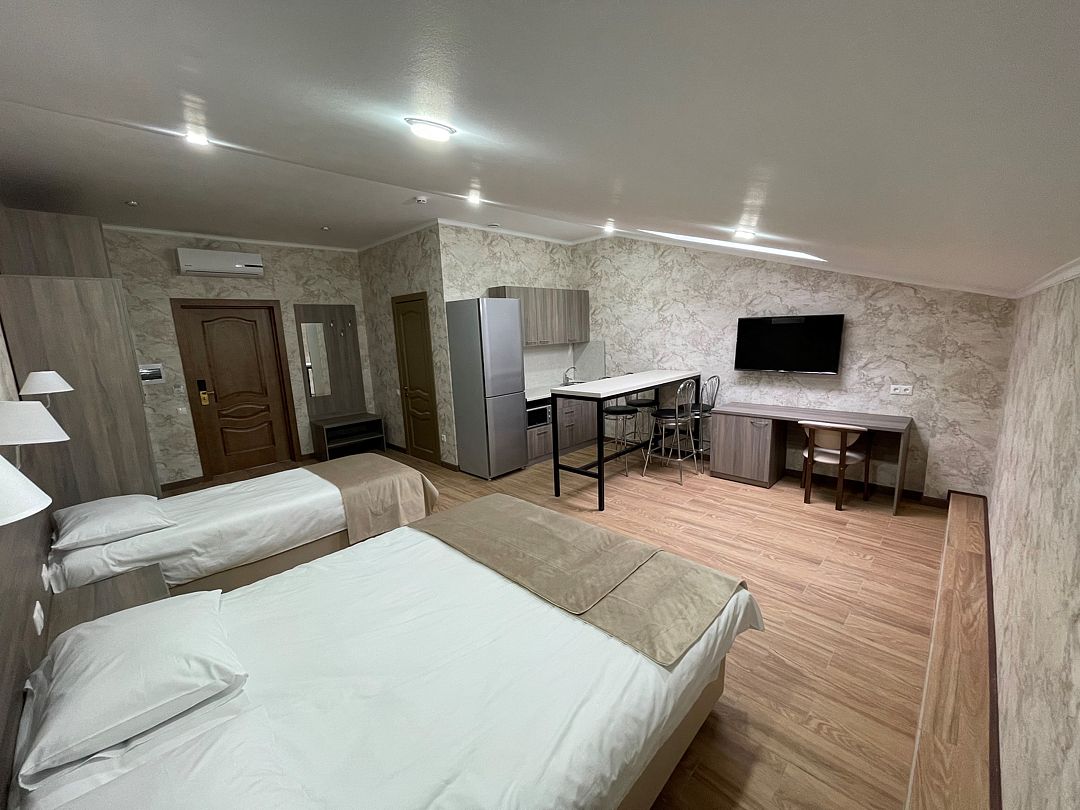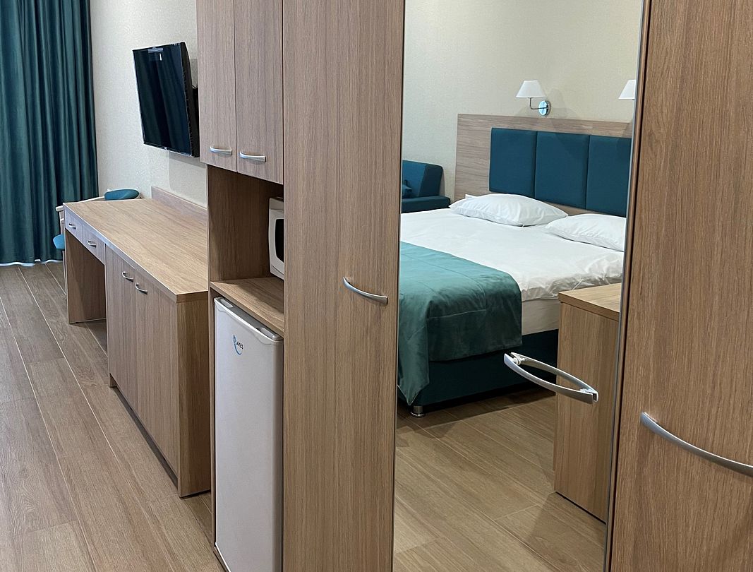 Пятиэтажный корпус отеля возвышается в отдалении от центральных шумных улиц и магистралей всего в 600 метрах от морского побережья. В распоряжении гостей 29 современных номеров, в каждом из которых есть собственный санузел, душ, кондиционер, ЖК-телевизор, электрочайник, а в апартаментах обустроены мини-кухни.