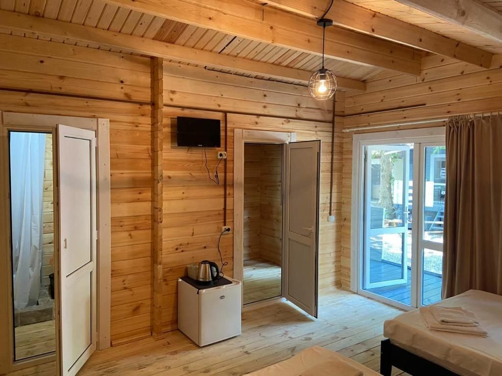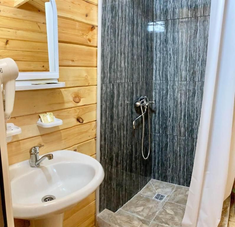 Комплекс из 7 комфортабельных коттеджей находится всего в 150 метрах от моря. В каждом коттедже одна комната, в которой есть свой санузел с душевой кабиной, кондиционер, электрочайник, мини-холодильник, телевизор. Каждый коттедж имеет небольшую террасу.