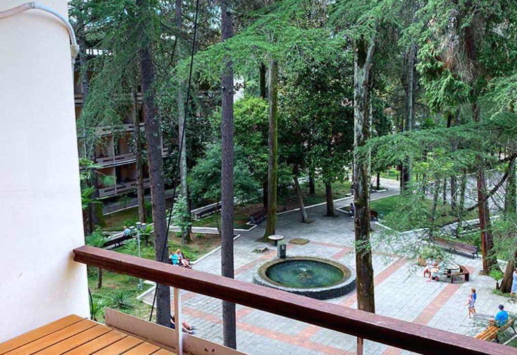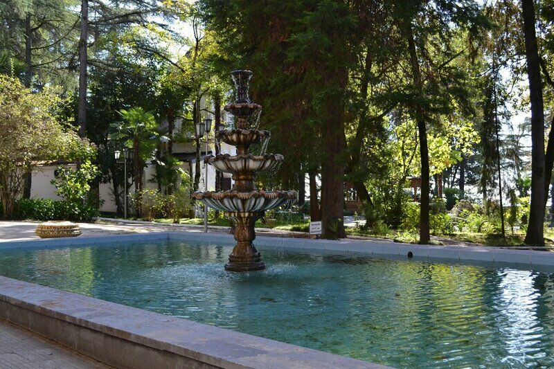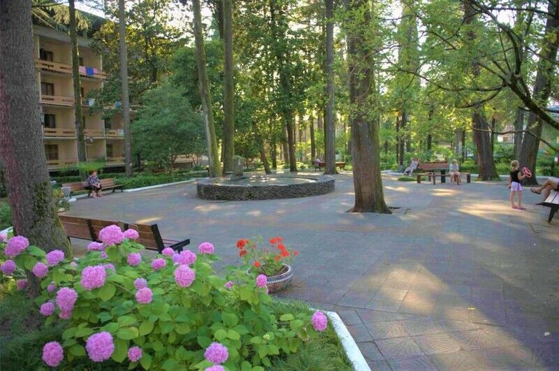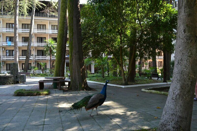 Пансионат «Айтар» построен в курортном районе Сухума – месте, которое уже два столетия называют Синопом. Неподалеку находится церковь во имя св. Георгия, возведенная еще в XII столетии. Эта часть города уникальна: территория пансионата относится к Сухумскому дендрологическому парку, в котором собрано около 900 видов растений со всей планеты. Под кронами деревьев прохладно даже в жару, и потому парк прекрасен в любое время года. Его обитатели привыкли к людям: павлины свободно разгуливают по аллеям, а белки играют среди ветвей.