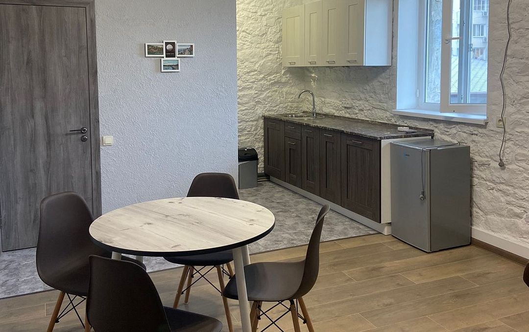 Двухкомнатные апартаменты оформлены в стиле лофт и полностью благоустроены. Есть все необходимое для комфортного проживания — двуспальная кровать, раскладной диван, оборудованная кухня, ТВ, стиральная машина, кондиционер, Wi-Fi, ванная комната с душем.