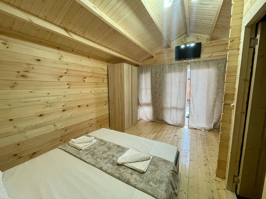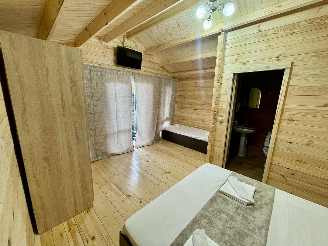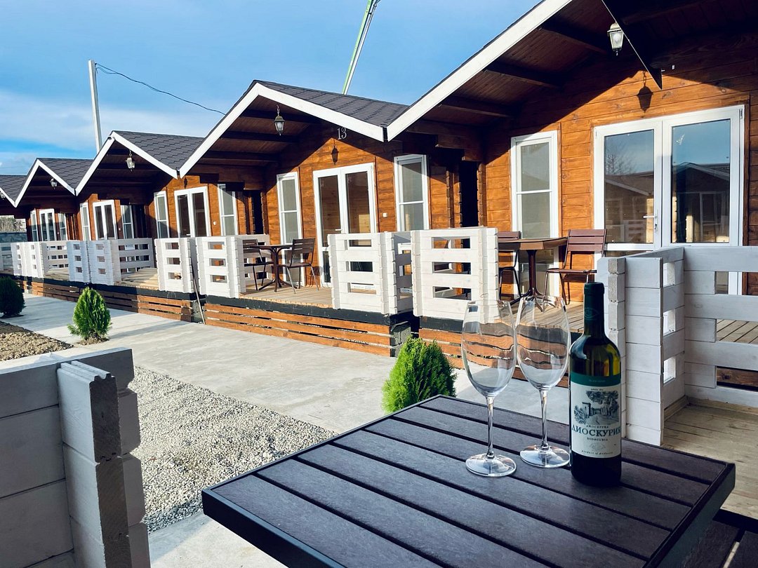 Коттеджный комплекс состоит из 3-местных номеров с дополнительным местом, оснащенных всем необходимым для комфортного отдыха: смарт-телевизор, холодильник, сплит-система, фен, интернет Wi-Fi, а также 2-спальная и 1-спальная кровати, шкаф, тумбы. У каждого номера есть собственная уютная терраса с мебелью.