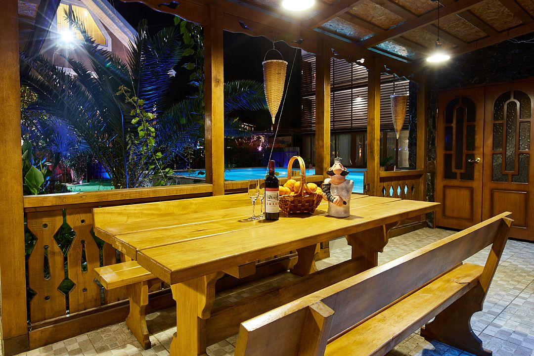В отеле работает небольшой ресторан, где подают блюда национальной абхазской кухни. В распоряжении гостей открытый подогреваемый бассейн с пресной водой, спортзал, сауна и массажный кабинет. Отдыхающим доступны услуги прачечной, сеть wi-fi, для автовладельцев организована охраняемая парковка.