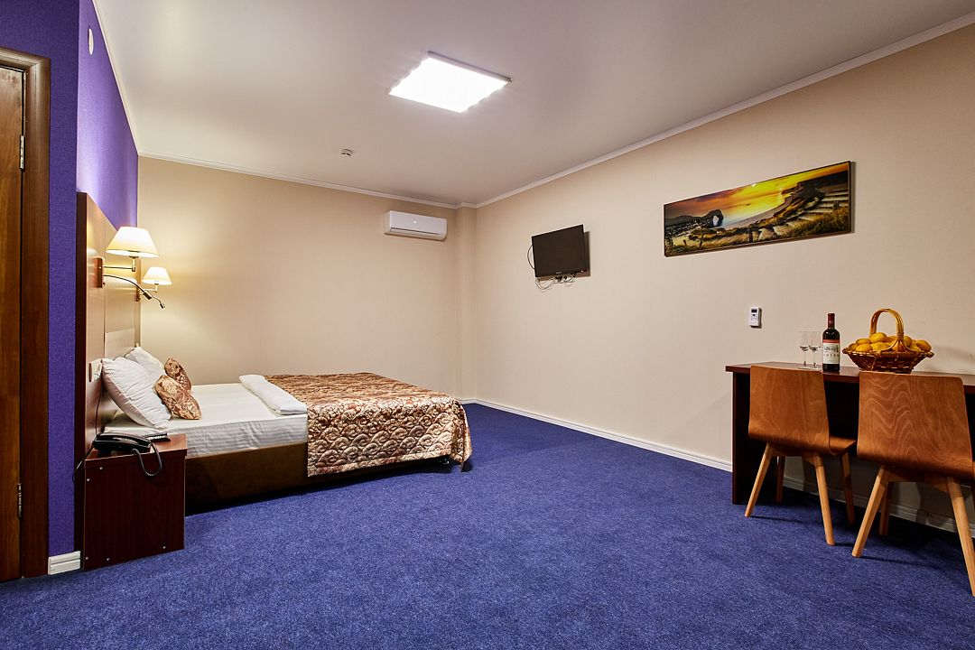 4-х этажное здание отеля находится на закрытой охраняемой территории. Жилой фонд включает в себя 31 номер категории Семейный и Стандарт. В каждой комнате индивидуальный интерьер, есть ванная комната с душем, необходимая бытовая техника — кондиционер, телевизор, фен, холодильник.