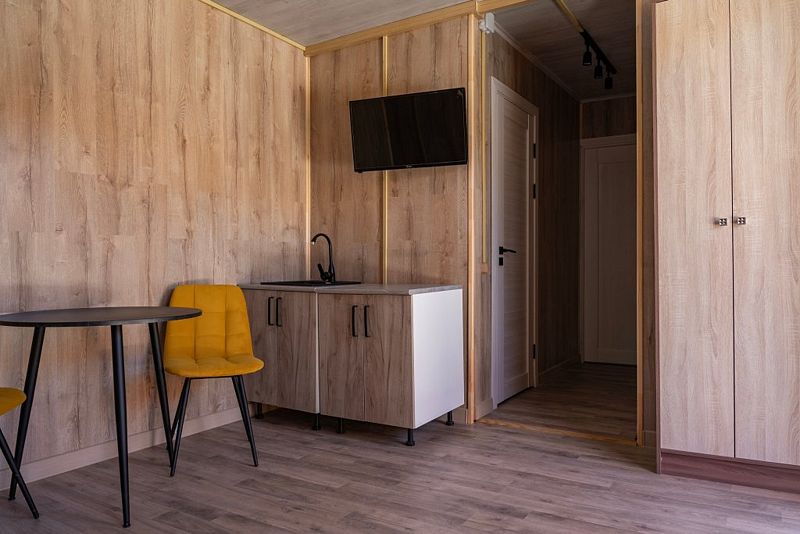 Коттеджи оснащены всем необходимым для комфортного отдыха. На территории отеля расположены: сухая сауна с купелью, автомобильная парковка, зона барбекю, также есть бесплатный Wi-Fi.
