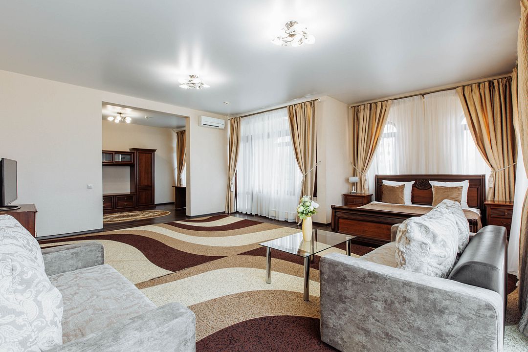 Отель занимает 4-ый этаж четырехэтажного культурно-делового центр «Дом Москвы». Гостей ожидают двухместные номера Стандарт, двухкомнатные Люксы и трехкомнатные Апартаменты, рассчитанные на размещение 5 человек. Все номера оборудованы сплит-системой и санузлом с душем, имеется телевизор и холодильник. Люксы и Апартаменты оснащены джакузи и душем с гидромассажем.