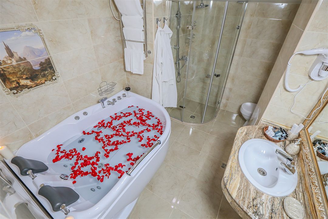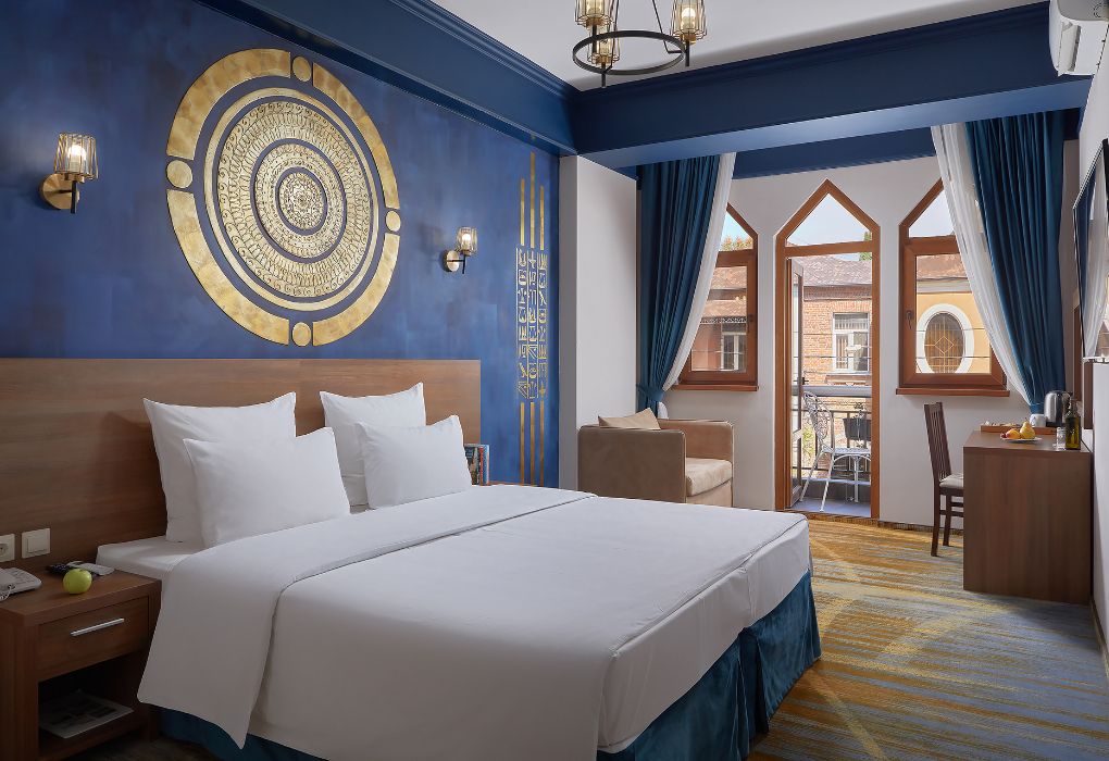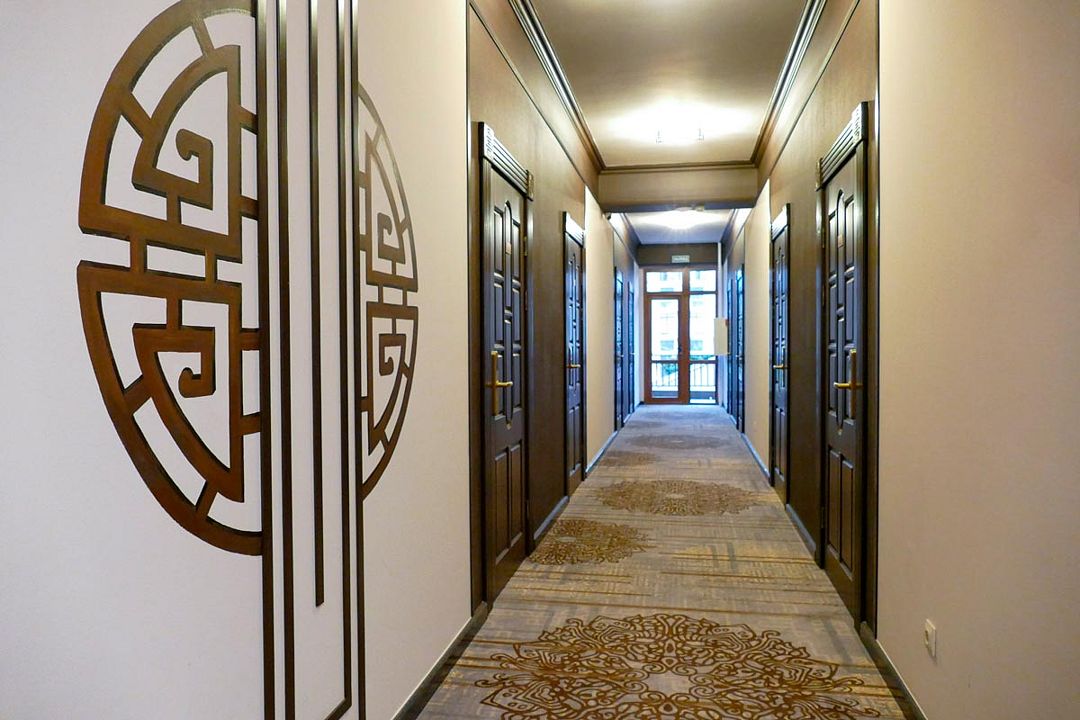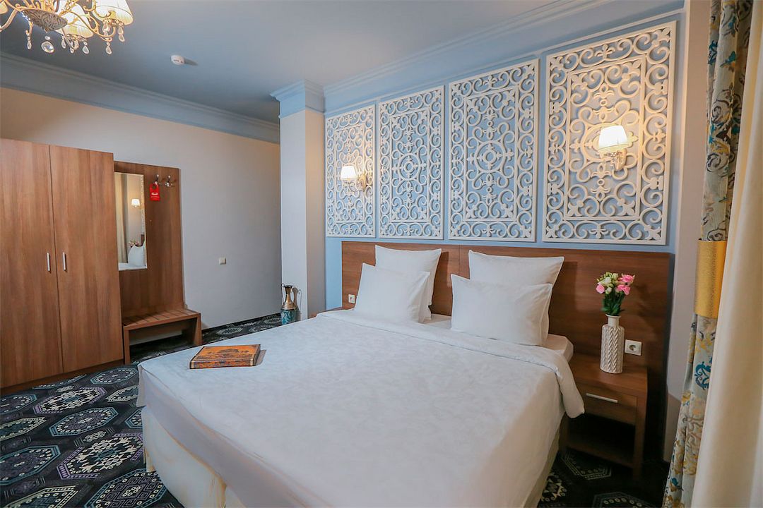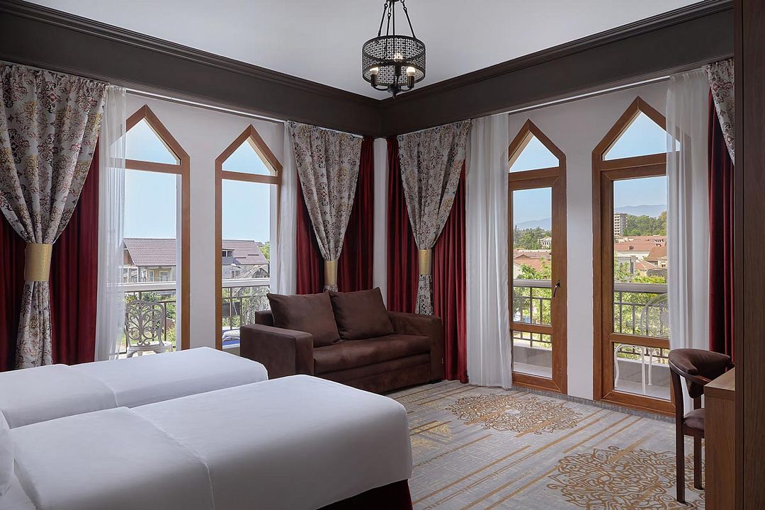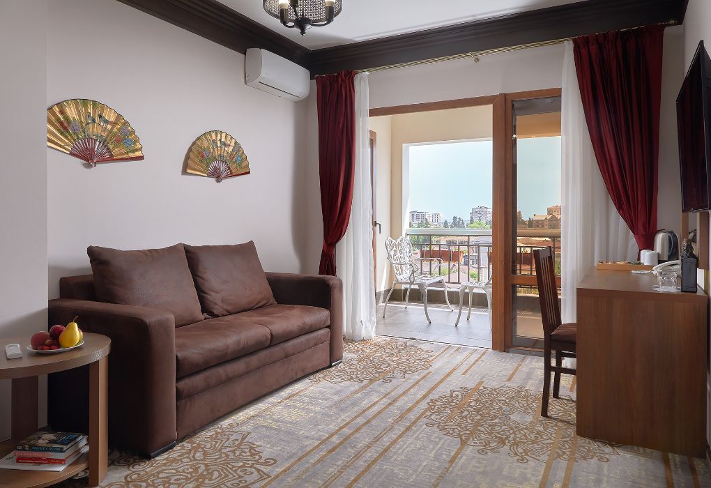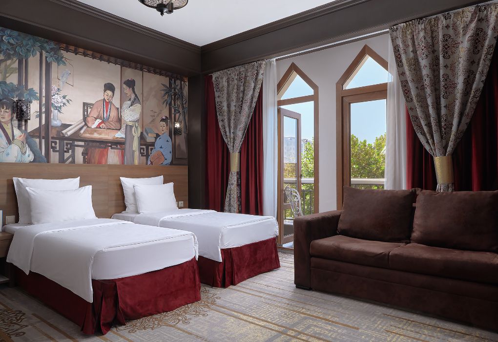Современный семиэтажный корпус отеля, оснащенный лифтом, располагается в 800 метрах от моря. Дизайнерский интерьер отеля оформлен в интересном восточном стиле, каждый этаж стилизован под определенную страну — Турцию, Египет, Индию. Гостей ожидают комфортабельные номера разных категорий, в каждом есть санузел с душем, установлена спит-система и имеется необходимая бытовая техника: телевизор, холодильник, фен.