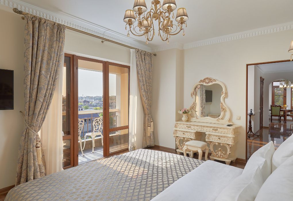 Один ребенок до 5 лет при размещении с двумя родителями в номере - без места, с питанием бесплатно. Десткая кроватка - по запросу, бесплатно (при наличии). В королевском люксе допускается размещение с детьми старше 8 лет.