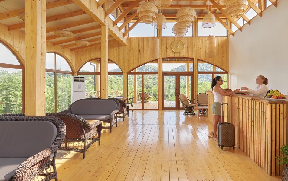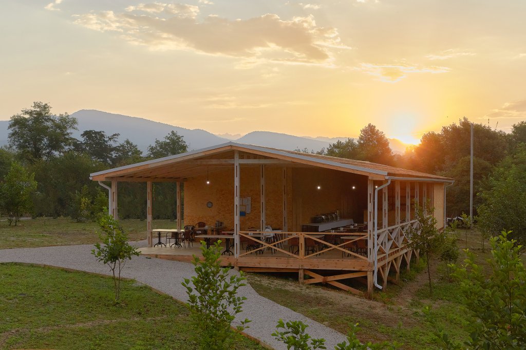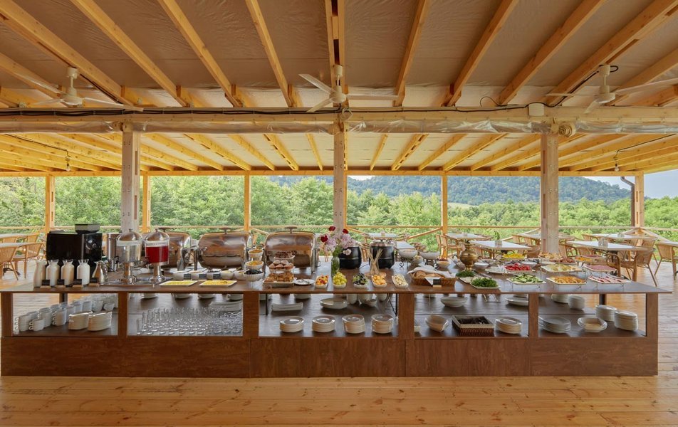 На территории работает кафе, открыт абхазский рынок на колесах, организованы индивидуальные зоны для барбекю и костровая лаундж-зона. К услугам отдыхающих охраняемая парковка, интернет. Расслабиться гости могут в бане, из которой предусмотрен выход прямо к чистой горной реке. В 10 минутах езды — живописный галечный пляж, на побережье гостей регулярно доставляет трансфер.