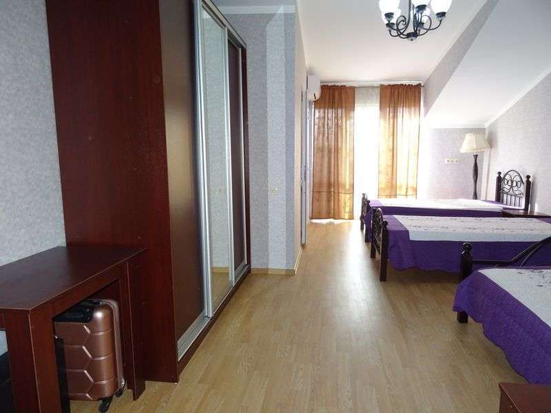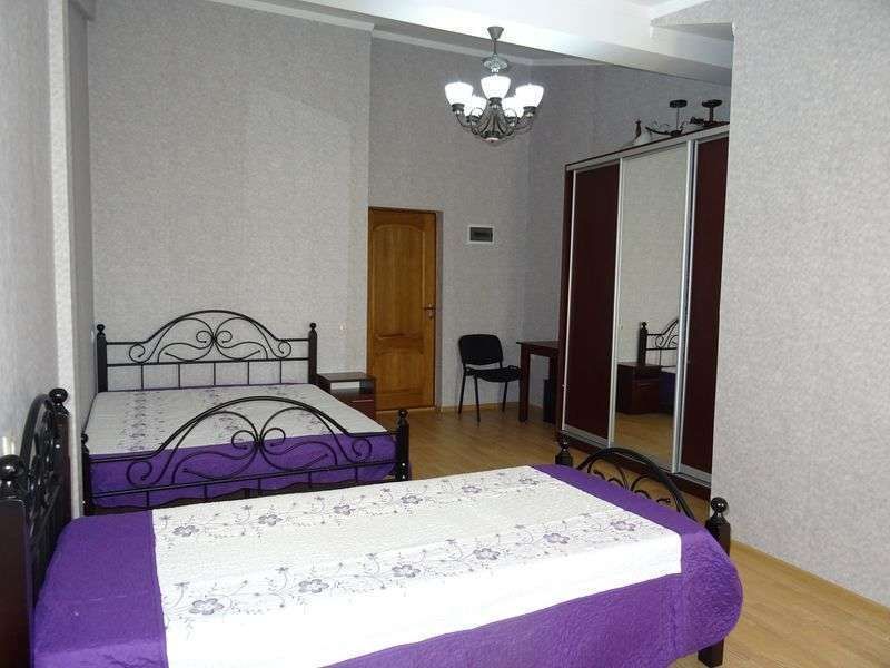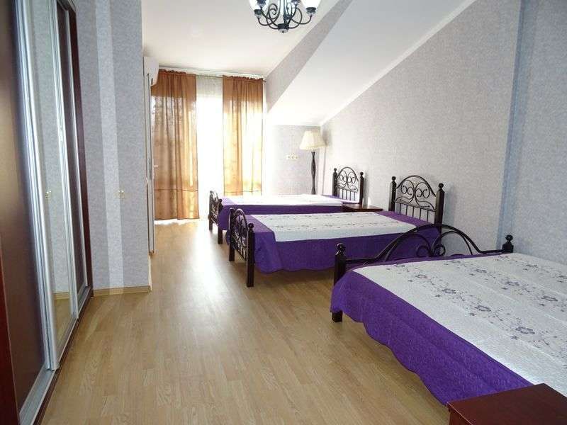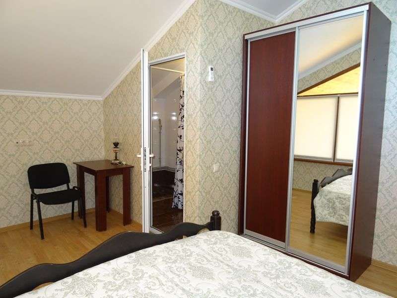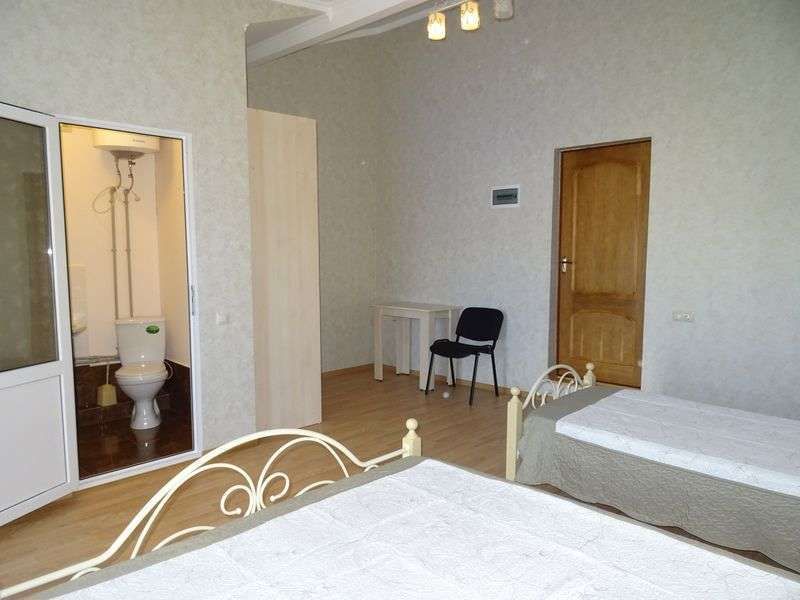 Трехэтажный корпус гостевого дома находится в тихом зеленом квартале города на небольшой закрытой территории. В доме всего лишь 5 номеров, такой камерный жилой фонд несомненный плюс для тихого и комфортного отдыха. Однокомнатные номера оснащены собственный санузлом с душем, в комнатах есть кондиционер, телевизор и холодильник, бесперебойно поступает холодная и горяча вода.