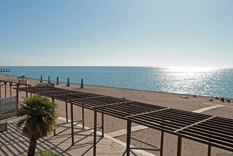 В 5 минутах ходьбы разместился городской пляж. На галечном побережье есть раздевалки, лежаки и навесы от солнца, можно арендовать шезлонг.