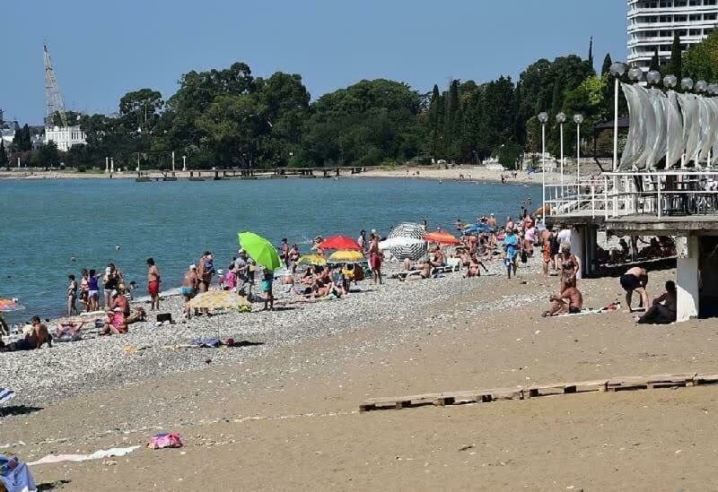 Поездом или самолетом – до г. Сочи (Адлер), далее на общественном транспорте или на такси до «Казачьего рынка» (8 км от ж/д вокзала, 15 км от аэропорта), затем пройти пешком около 500 м до пограничного поста на р.Псоу до границы России и Абхазии. После самостоятельного прохождения паспортного и таможенного контроля до места отдыха можно доехать на автобусе, маршрутном такси или воспользоваться услугами частных водителей.