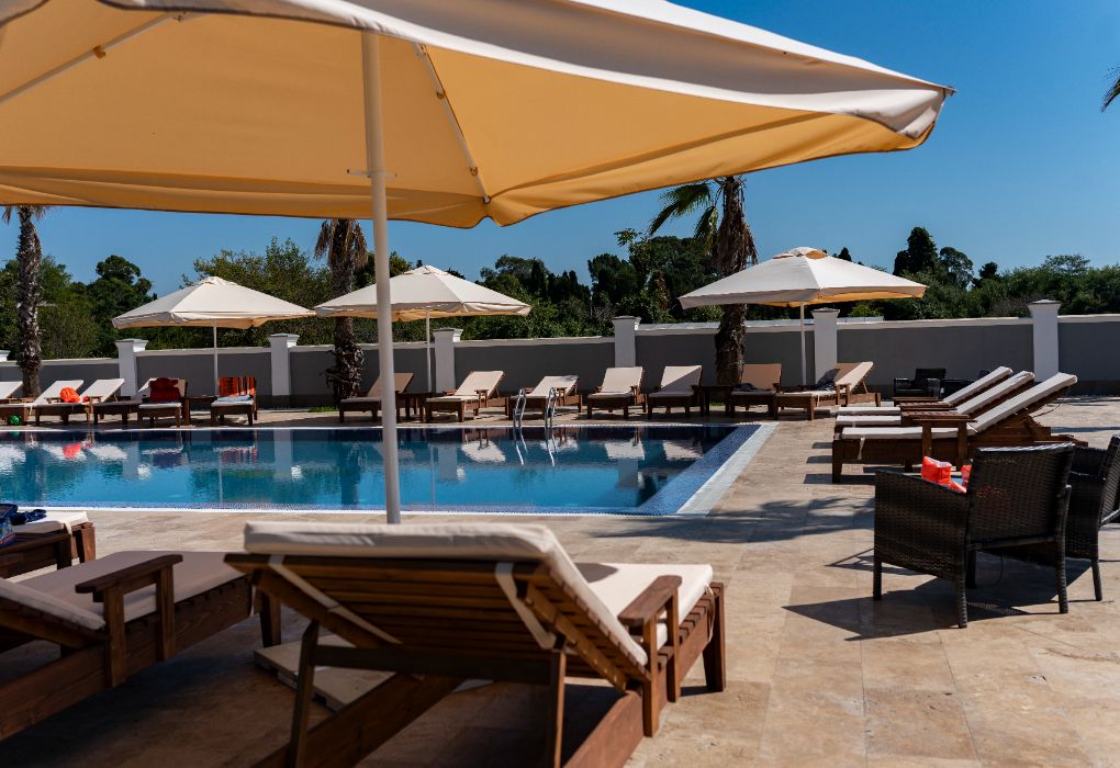 Тип бассейна: открытый бассейнВода в бассейне: подогреваемый бассейнРядом с бассейном: шезлонги, полотенца -