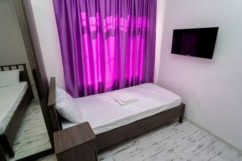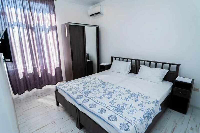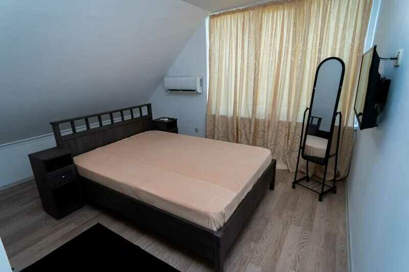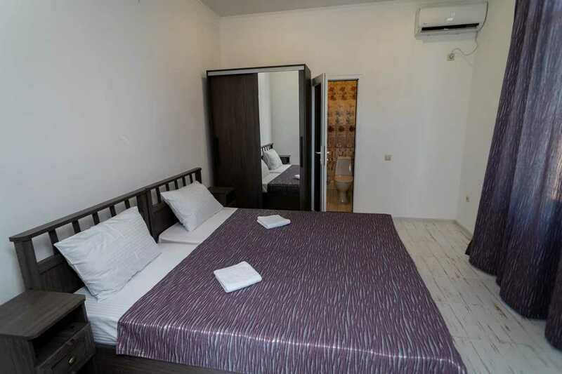 Трехэтажный корпус гостевого дома занимает небольшую закрытую территорию. Всего в доме 9 номеров, в каждом из которых имеется индивидуальный санузел, удобный мебельный гарнитур, кондиционер и телевизор, а в ряде комнат предусмотрены балконы.