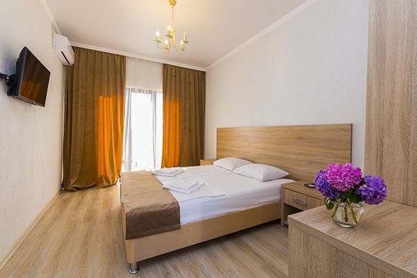 На закрытой территории гостиничного комплекса располагаются восемь 3-этажных зданий, окруженных красивыми южными деревьями. «Парадайз» хорош не только близостью к морю: гости пользуются большим открытым бассейном с зоной отдыха. Вся территория отеля ухожена, располагает уютом и чистотой. Для отдыха можно выбирать коттеджи, построенные из экологически чистых материалов, или номера категории «стандарт». В распоряжении гостей – удобная современная мебель и необходимая бытовая техника, доступен Wi-Fi.