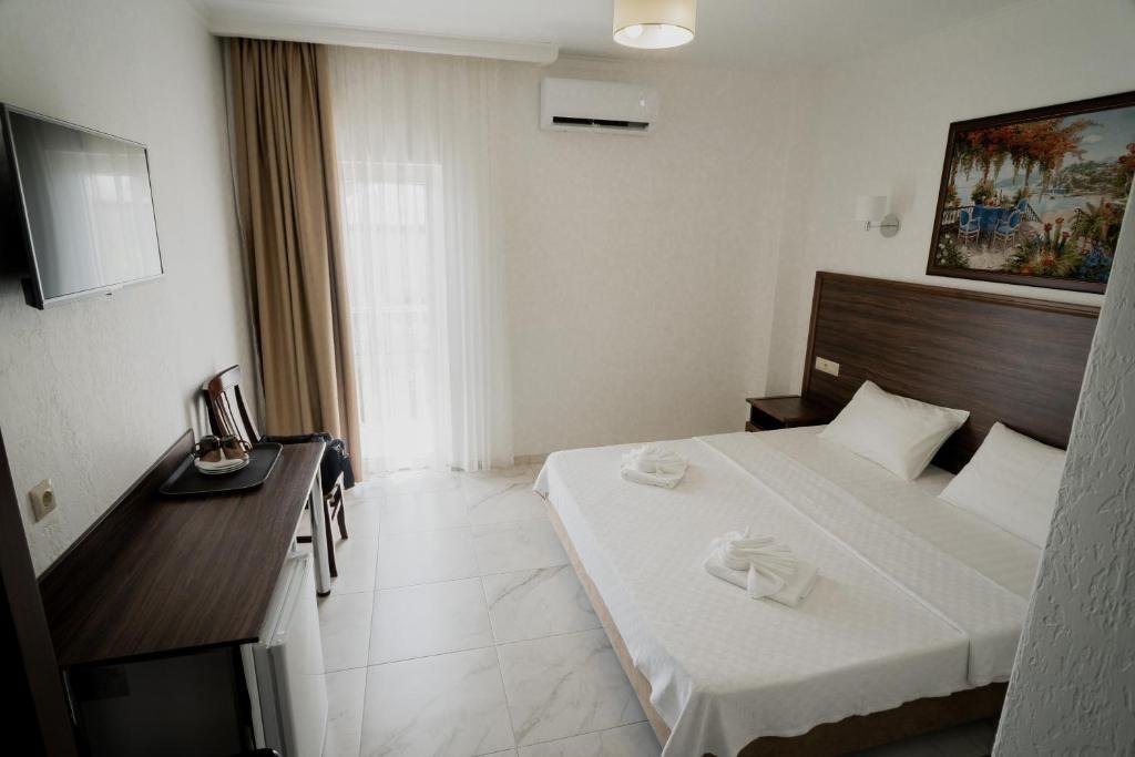 В каждом номере имеется кондиционер, телевизор, холодильник и санузел с душем. Из окон открываются живописные виды на море.