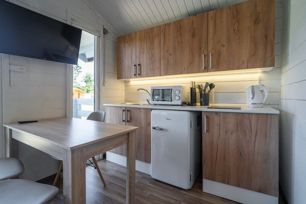 Двухкомнатный номер, оформленный в классическом стиле. Оснащен всем необходимым для комфортного пребывания. - площадь Гостевого Дома 33,5 м2 Кухня-гостиная 14,6 м2 спальня 6 м2 су, душевая 4,3 м2 веранда 8,6 м2 - бесплатный устойчивый Wi-Fi (100МГБ) - кровать двуспальная 2*1,8 - диван-кровать раскладная 1,8*0,9 - кондиционер - эл. Чайник - фен - TV (Smart tv wi-fi) - Кухня (холодильник, микроволновка, эл плита) - стол обеденный, 4 стула - детский мини-бассейнУслуги и удобства