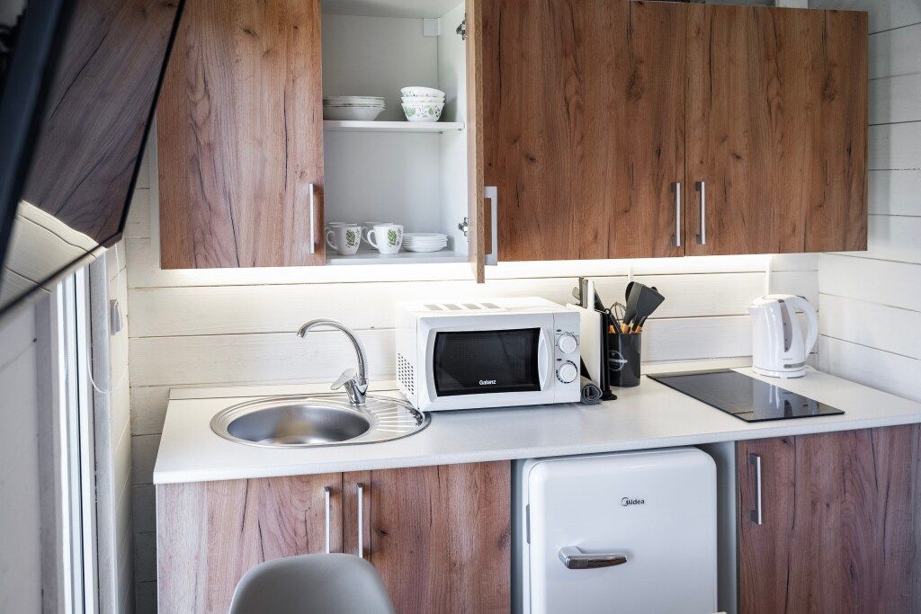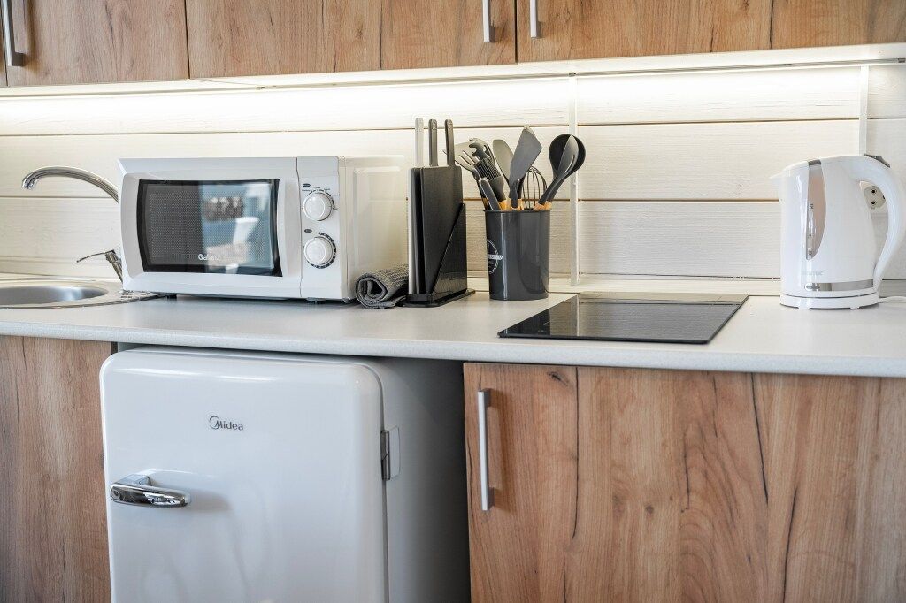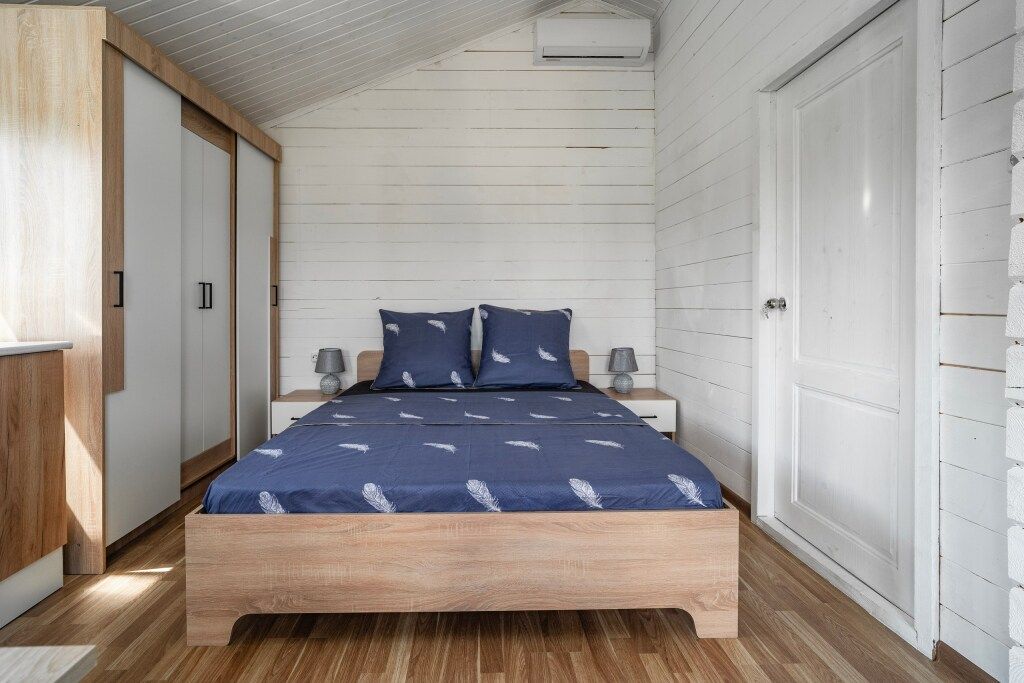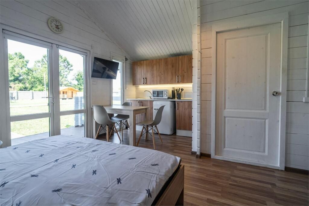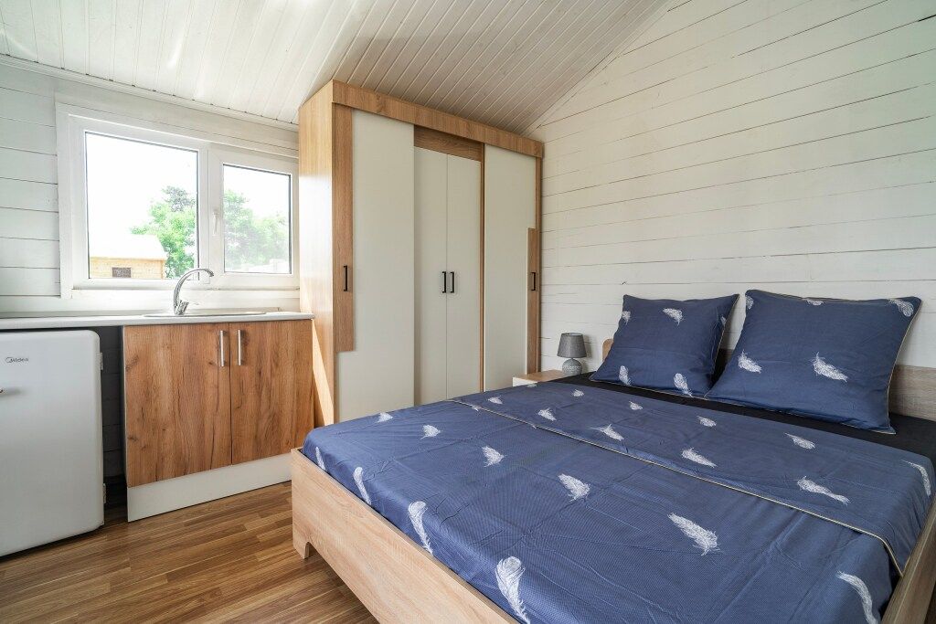 Однокомнатный номер, оформленный в классическом стиле. Оснащен всем необходимым для комфортного пребывания. - площадь Гостевого Дома 27м2: студия 17м2 су, душевая 3м2 веранда 7м2 - бесплатный устойчивый Wi-Fi (100МГБ) - кровать двуспальная 2*1,8 - кровать двухъярусная 2*0,9 - кондиционер - эл. Чайник - фен - TV (Smart tv wi-fi) - Кухня (холодильник, микроволновка, эл плита) - стол обеденный, 4 стула - детский мини бассейнУслуги и удобства