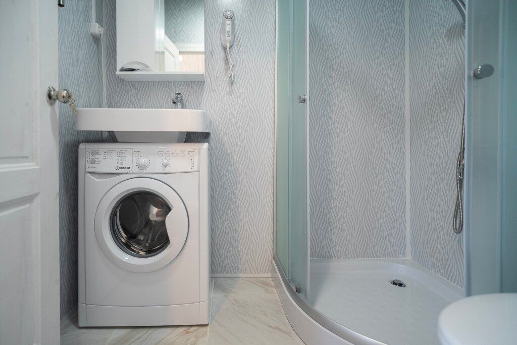 Wi-Fi, холодильник, кондиционер, фен, плита для приготовления пищи, микроволновая печь, ванна или душевая кабина, банные полотенца, двуспальная кровать, стиральная машина, чайник, туалет, диван-кровать, телевизор со Smart TV, без питомцевВ гостиничном номере