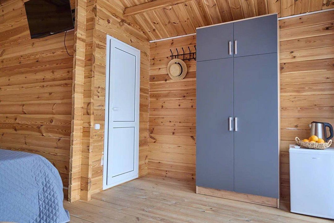 Каждый коттедж оснащен всем необходимым для комфортного проживания: кондиционером, Wi-Fi, холодильником и удобной мебелью. Гости могут выбрать дом с большой кроватью или раздельными кроватями. На территории находится общая кухня с необходимой бытовой техникой и посудой, а также место для барбекю, где можно провести время на свежем воздухе.