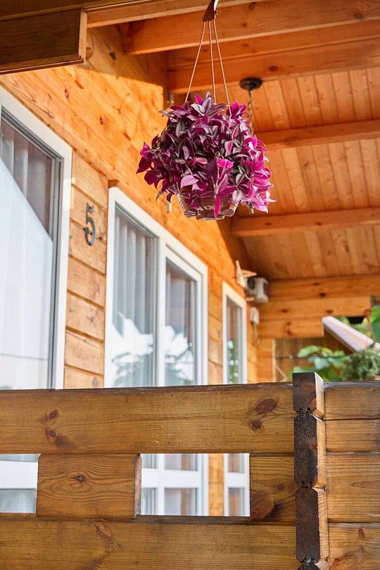 Стены из необработанного бруса (без лака и химии) — дышит как живое дерево. Энергосберегающие окна с москитными сетками. Локальная система очистки воды (можно пить из-под крана). Натуральные средства для уборки.