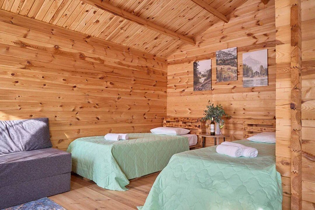 Деревянный коттедж Эко-домик на 4 человека с двумя раздельными или двуспальной кроватью