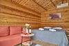 Одноэтажный дом с двуспальной кроватью и диваном подойдет для романтического отдыха или для семьи с детьми (по запросу: детская кроватка).