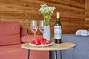 Особенности: спальня с кроватью king-size или двумя односпальными кроватями и постельным белоснежным бельем, холодильник, чайник, фен, телевизор, Wi-Fi, шкаф для вещей, диван, журнальный столик. Санузел: душ, полотенца, фен. Терраса с зоной для завтраков (летом — навес от дождя).