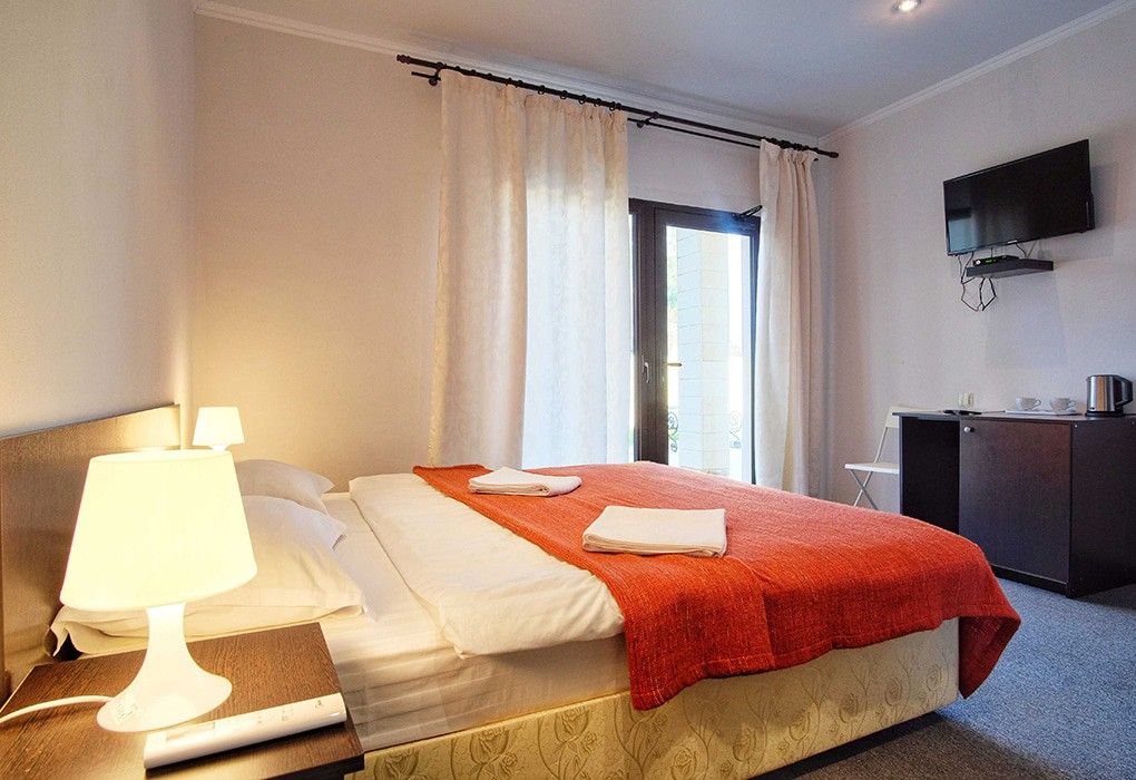 Отель «Vesna» расположен на собственной закрытой охраняемой территории, обладает собственной парковкой, кафе с местной и европейской кухней. Для детей есть игровой городок и комната творчества. Подходит для молодежи и отдыха семьей.