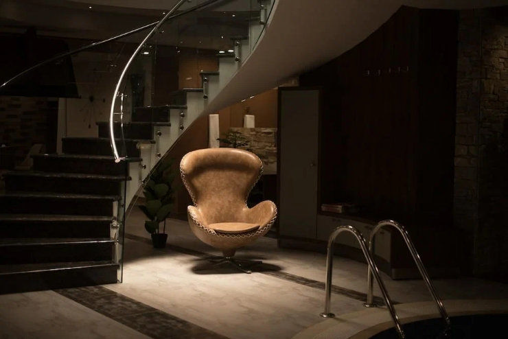 Дизайн интерьера, кухня и сервиз на высшем уровне! Очень комфортно мы отдыхали в бассейне и сауне!