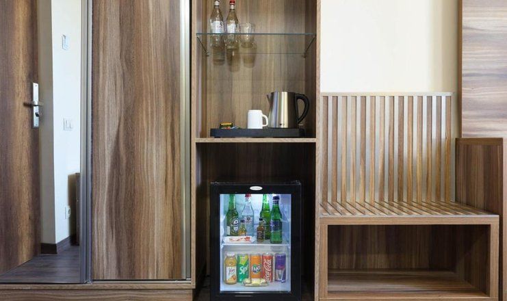 В номере всегда есть запас бутилированной воды, пакетированный чай и кофе.