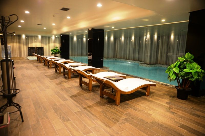 В крытом бассейне соленая вода фильтруется с системой многократной очистки. На территории бассейна постоянно находится спасатель-профессионал. Бассейн оборудован двумя отдельными раздевалками, шкафами для переодевания. Рядом с бассейном установлены удобные кожаные кресла и стулья. В зимний период вода в бассейне подогревается.