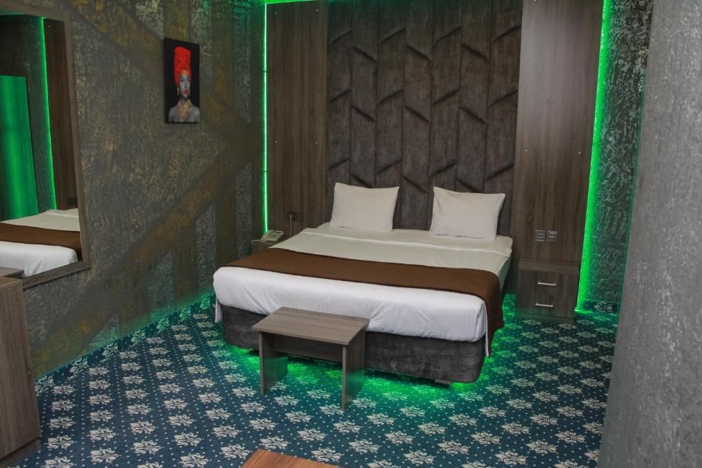 50 номеров разного уровня комфорта и вместимости расположились в 7-этажном здании с лифтом. Просторные комнаты имеют современный ремонт, в них установлена комфортная мебель для отдыха, есть шкафы для одежды, Wi-Fi, телевизор, сейф, кондиционер. Санузел индивидуальный, с душем или ванной, феном и туалетными принадлежностями.