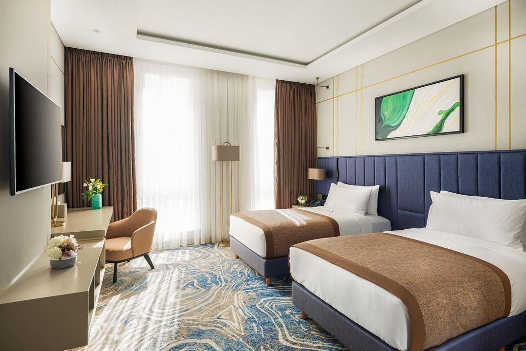 Короткий отпуск с друзьямиВернемся сноваОдин из лучших отелей Баку. Ставлю 5 баллов, так как считаю, что оценка отеля занижена. Персонал очень любезный, приветливый. Все чисто, очень удобные кровати, хороший напор воды в душе, горячая вода течет сразу. Тихо, высыпаешься, персонал старается и делает разные бонусы. Где-то в отзывах писали про запах канализации..такого не обнаружили, в отеле пахнет очень вкусно и хорошо. Персонал очень любезный. Из недочетов хотелось бы только отметить :1) горничные оставляют волосы после уборки, (пусть будут аккуратнее) - все-таки отель 5*, 2) на завтраках не хватает посуды, забыли нам принести кофе и омлет . Стали ходить в club-лаундж на завтрак, так там тоже очень медленное обслуживание, один раз вообще никого полчаса не было, мы кушали и ждали кофе (мы же не можем сами за барной стойкой его налить), очень скудный ассортимент завтраков. Это не солидно для такого уровня отеля и такой цены отеля. НО! При этом считаем, что рейтинг по отзывам занижен. Отель рекомендуем и остановимся снова, если будем в Баку.
