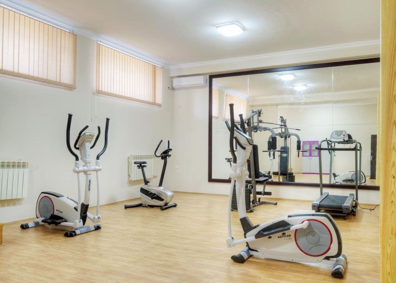В санатории работает столовая, где отдыхающим предлагается разнообразное меню, в том числе и диетическое. В распоряжении гостей зона для прогулок, тренажерный зал, беспроводной интернет.